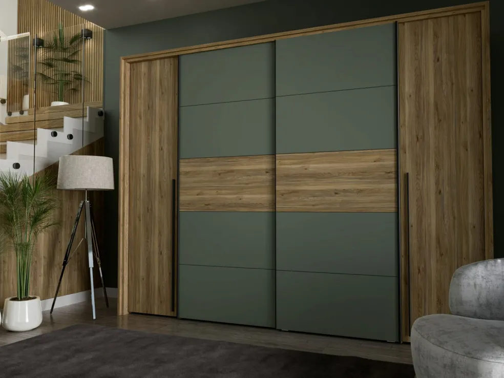 Façade: ton sauge (U59) et décor chêne Mauvella (D108)
