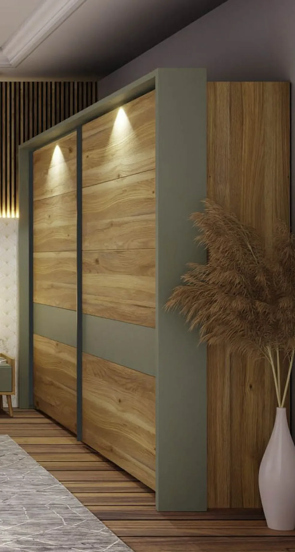 Façade: décor chêne Mauvella et ton sauge