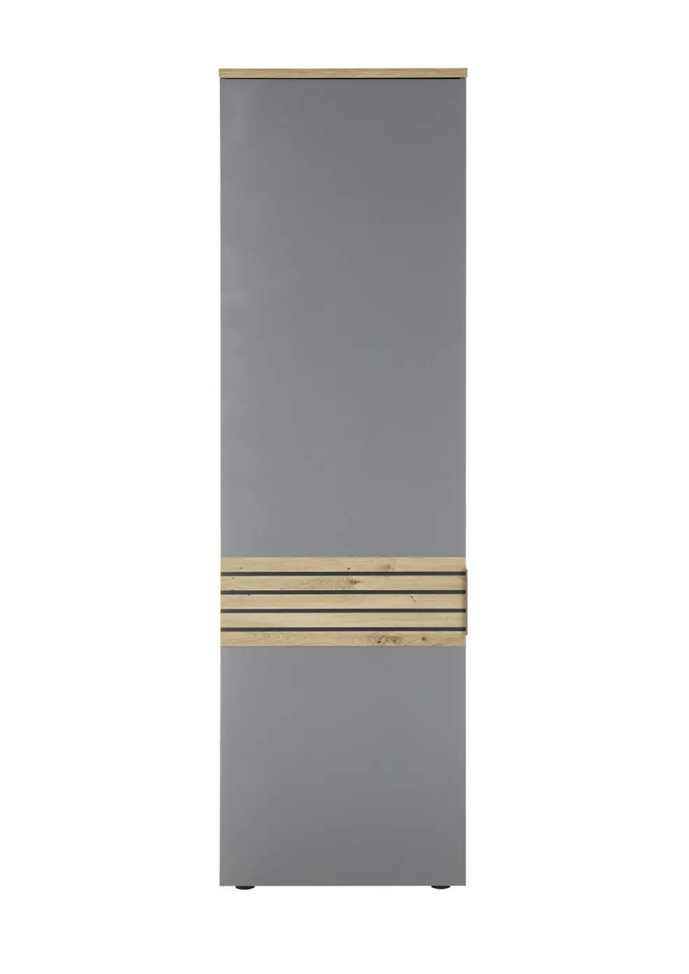 Façade: ton gris avec contrastes et décor rayures chêne Artisan
