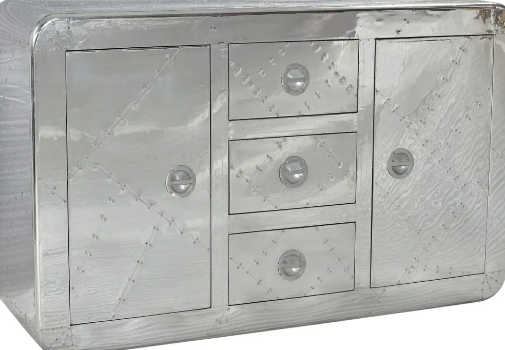 bois de manguier massif (Inde) avec MDF (panneau de fibres de bois de densité moyenne) et ferrures en alu ton argent