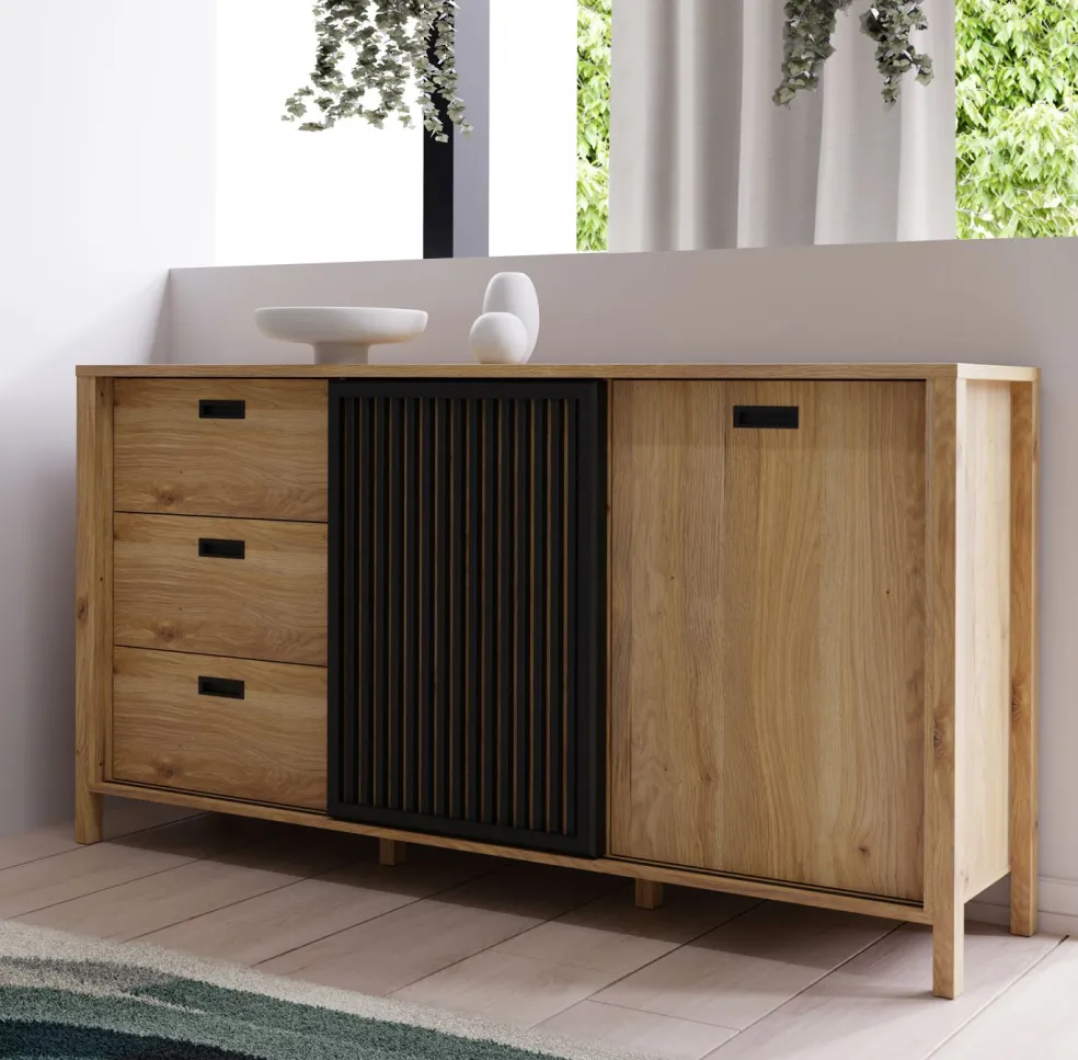 Façade: M635 décor chêne Mauvella (D108) avec contrastes ton noir (Z13)