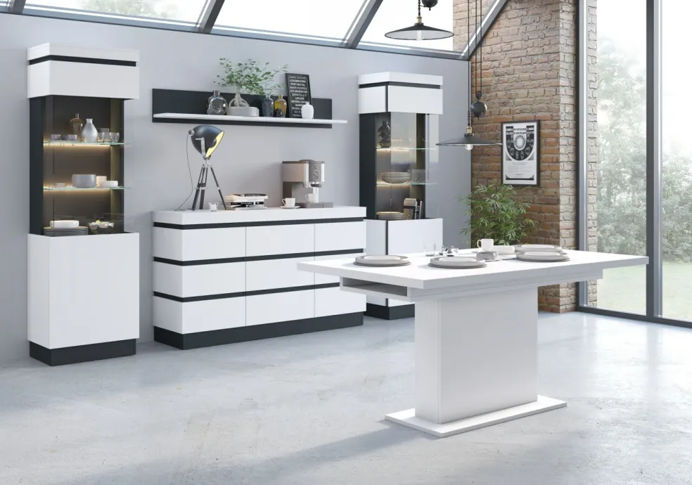 Caisson: ton blanc alpin avec contrastes ton anthracite