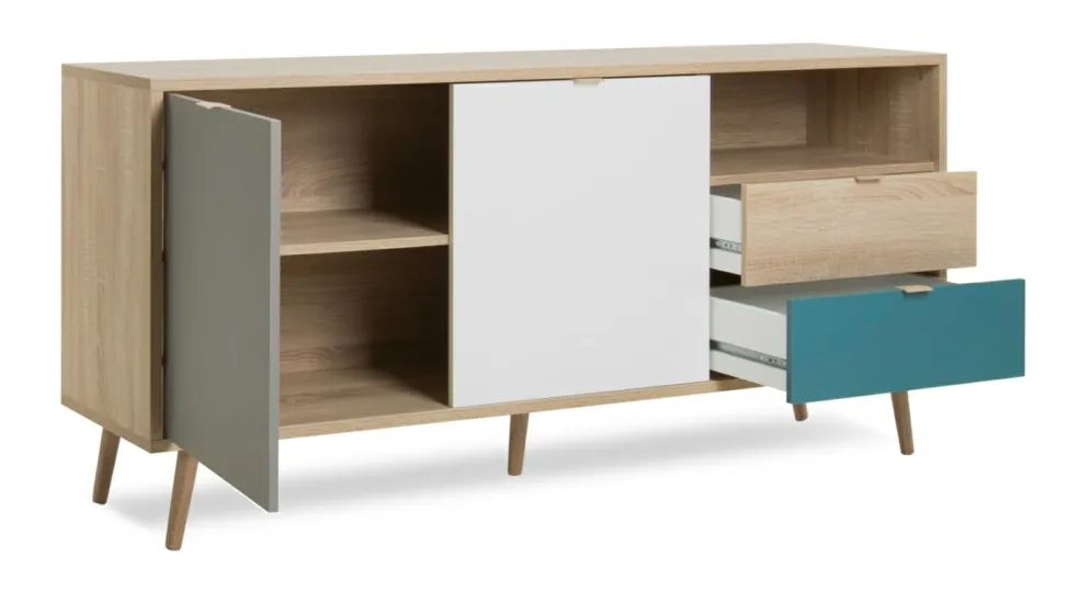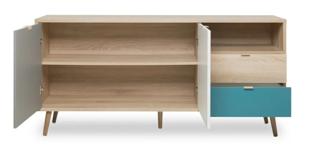 Façade : imitation chêne Sonoma / blanc / bleu pétrole / gris