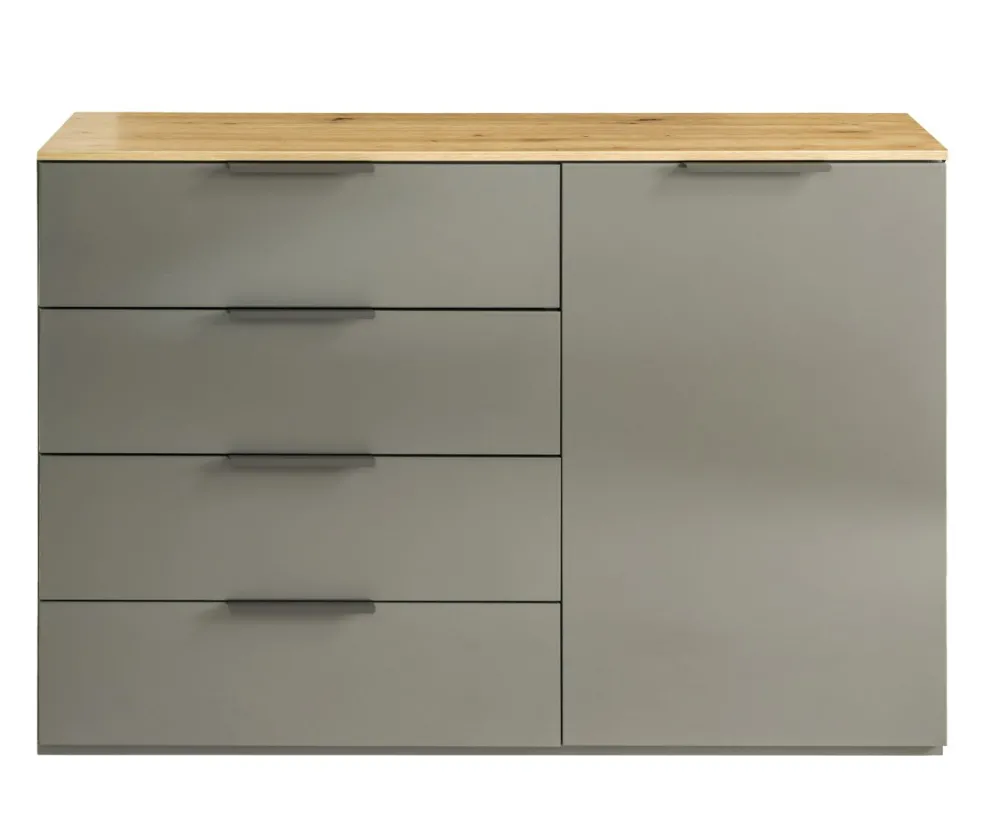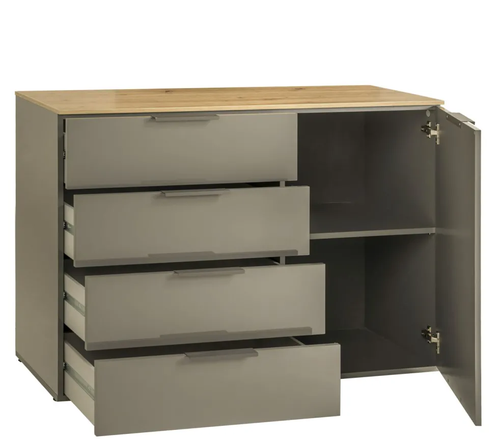 Caisson et façade: décor chêne Artisan et ton gris titane ultra brillant