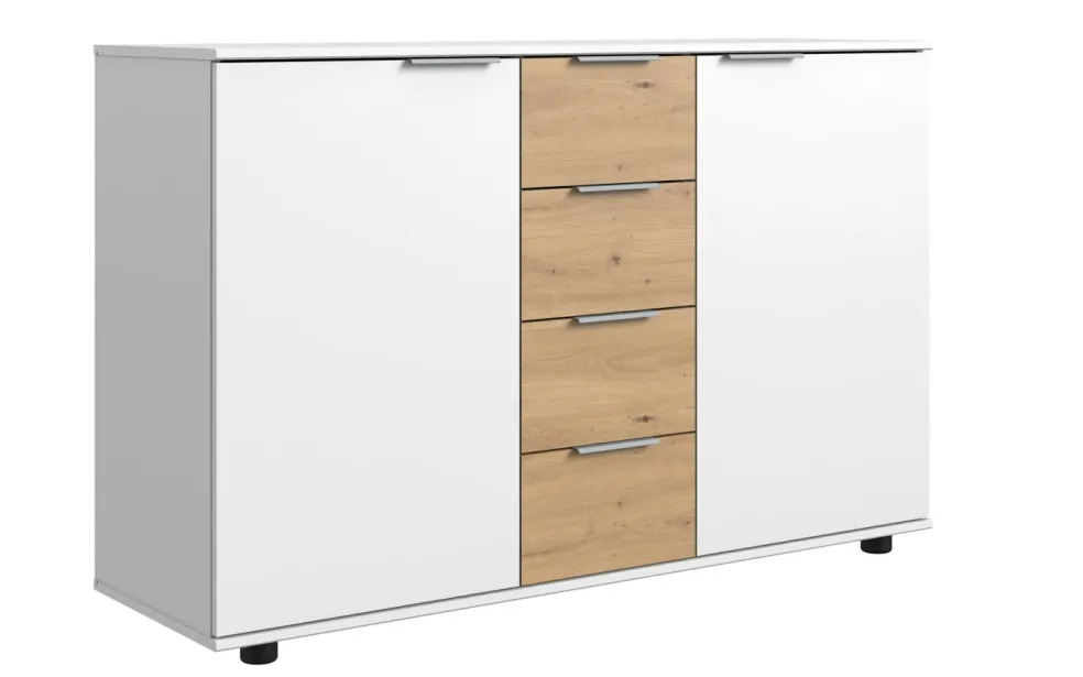 Caisson et façade : ton blanc avec contrastes décor chêne Artisan