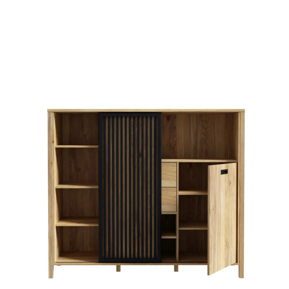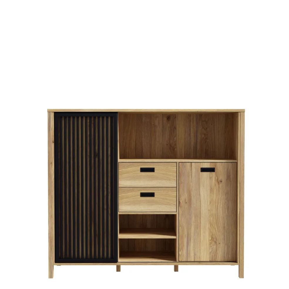 Façade: M635 décor chêne Mauvella (D108) avec contrastes ton noir (Z13)