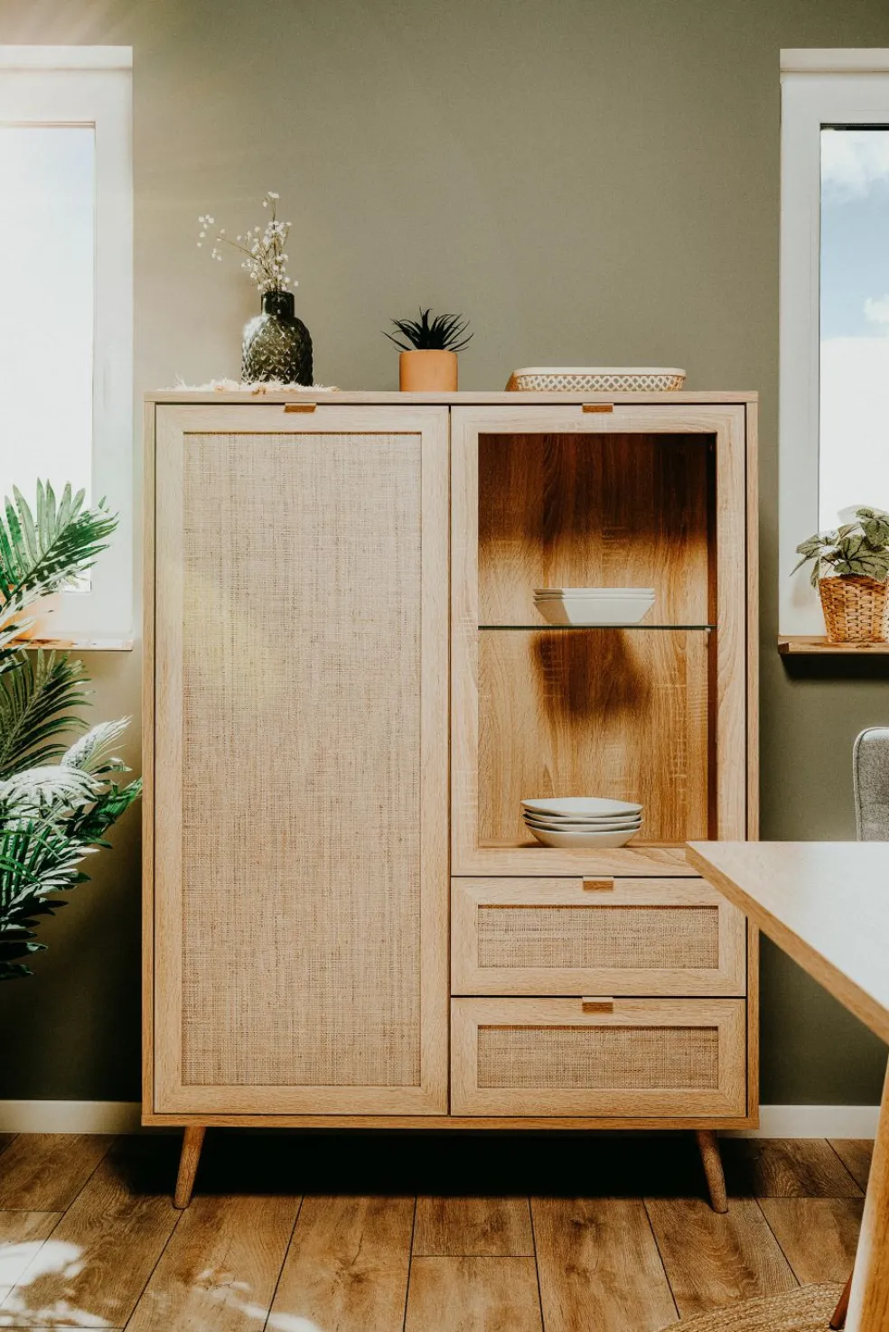 Décor chêne Sonoma / motif imprimé raphia tressé