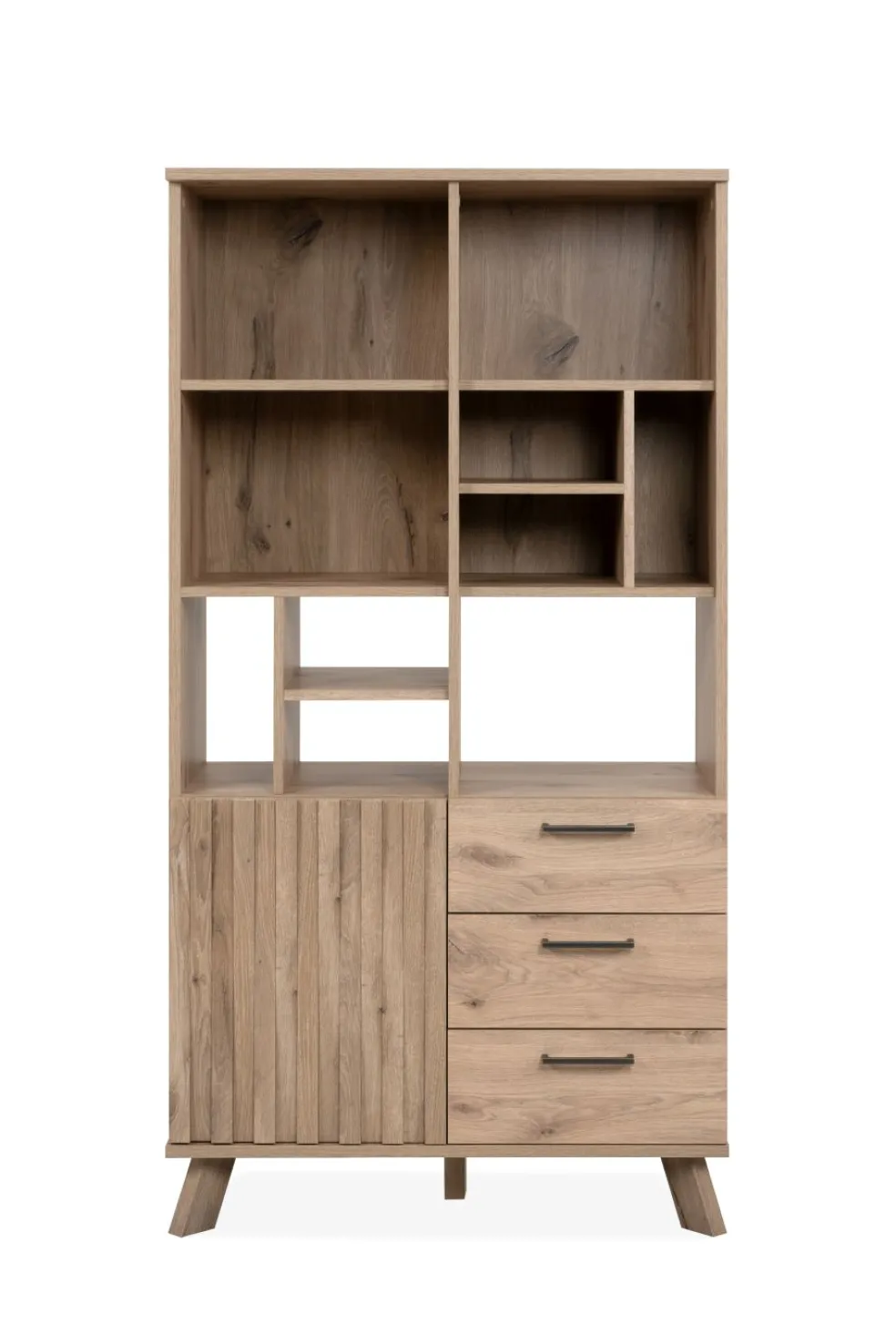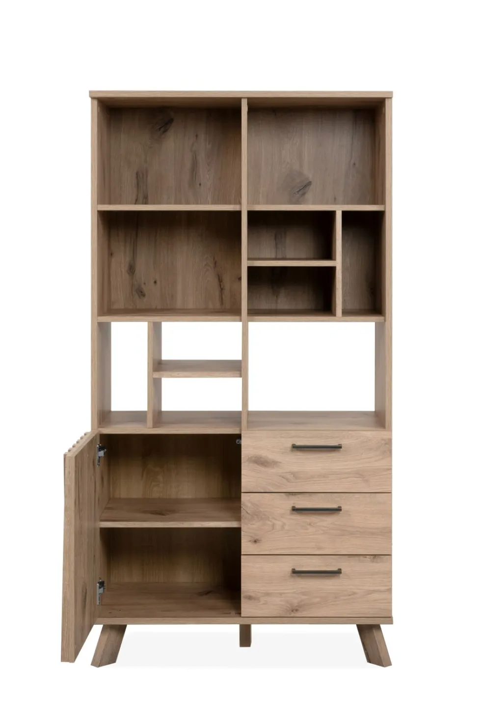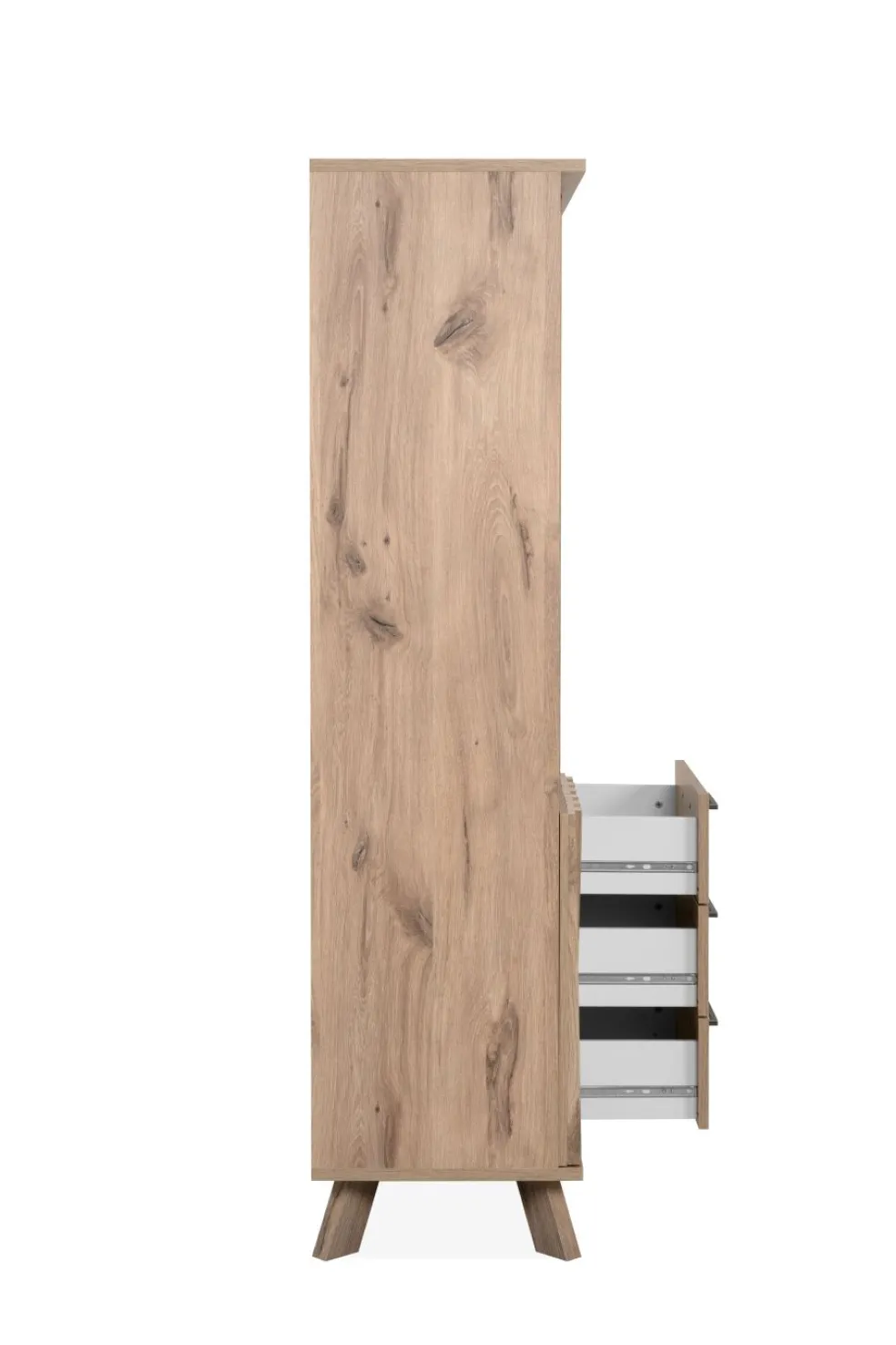 En bas à gauche: 1 porte avec effet relief 3D et ouverture par simple pression; derrière elle, 1 tablette amovible