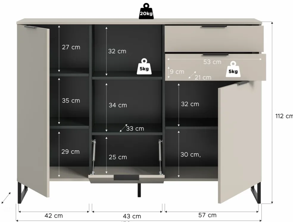 | Dimensions : | L/H/P env. 150/112/37 cm | ||