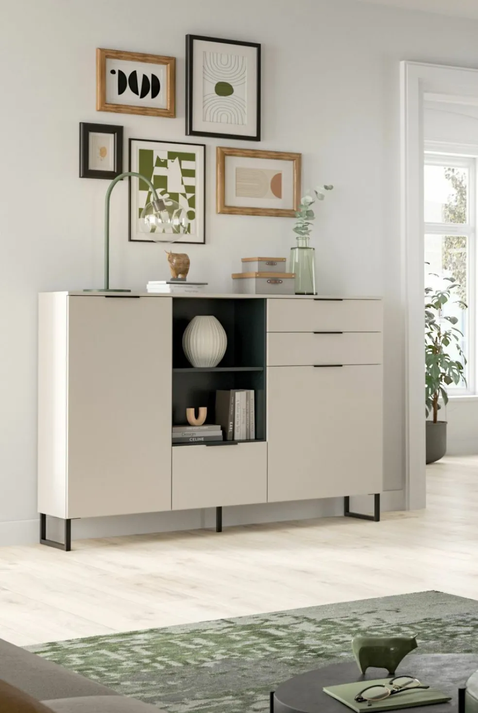| Équipement Commodes Phono Bureau Étagère: | Abattant(s), Casiers ouverts, Portes, Tiroirs | ||