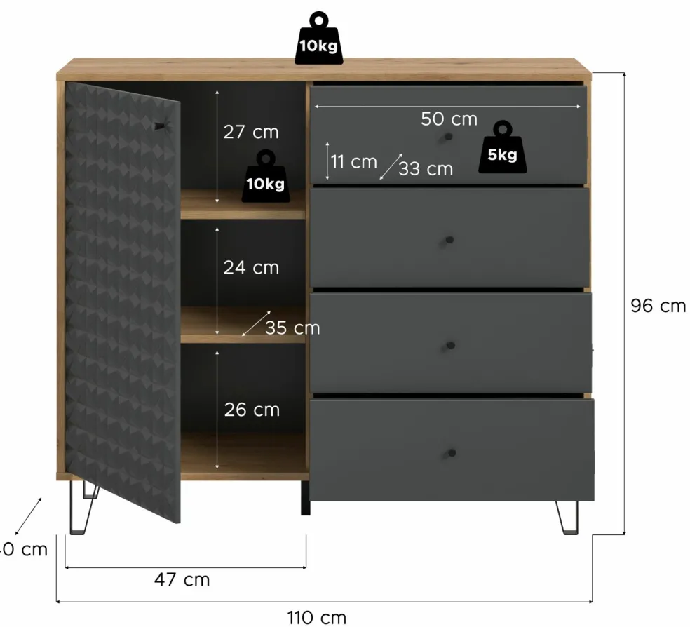 | Nuance de couleur: | chêne Artisan – anthracite | ||