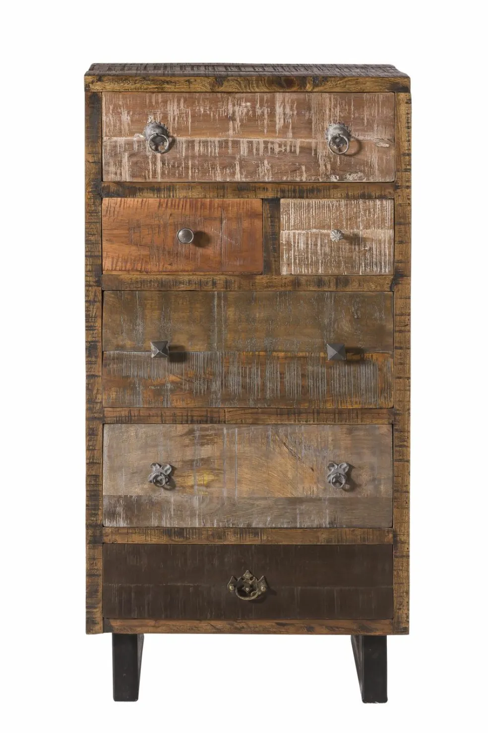 6 tiroirs dans différentes tailles avec des poignées différentes