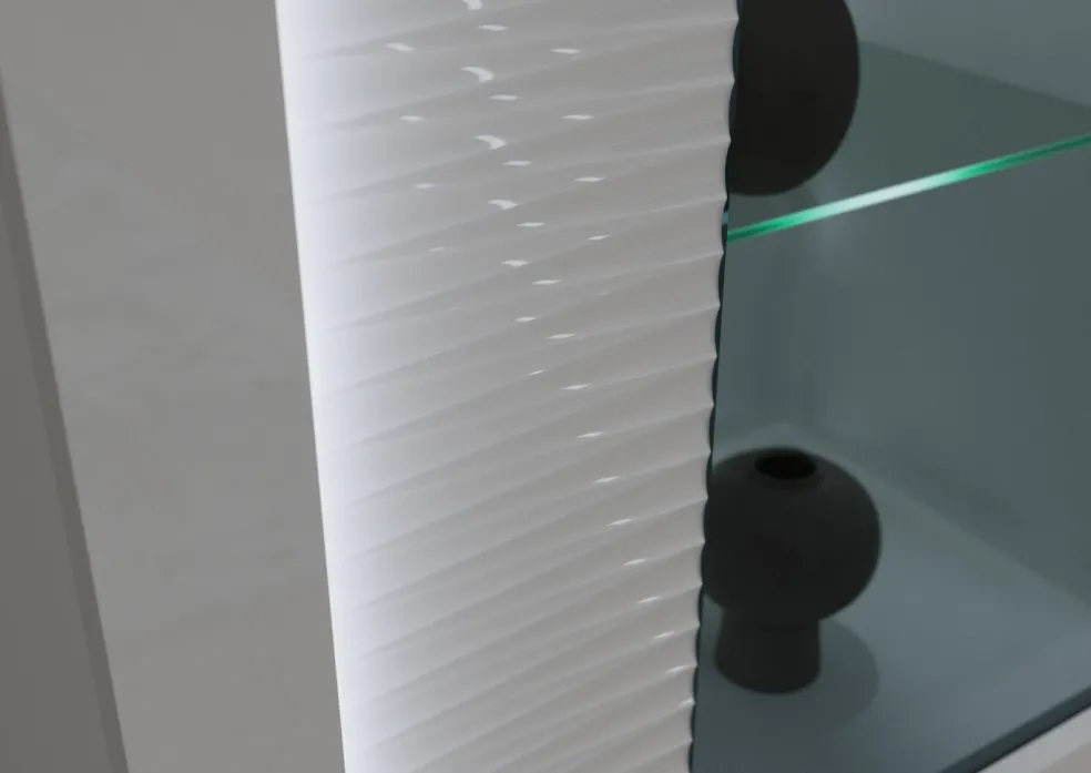 Façade: MDF (panneauxdefibres de boisde densitémoyenne) thermoformé ton blanc ultra brillant / verre