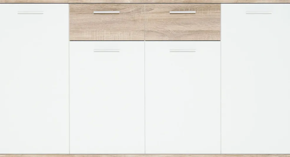 façade : ton blanc et imitation chêne Sonoma