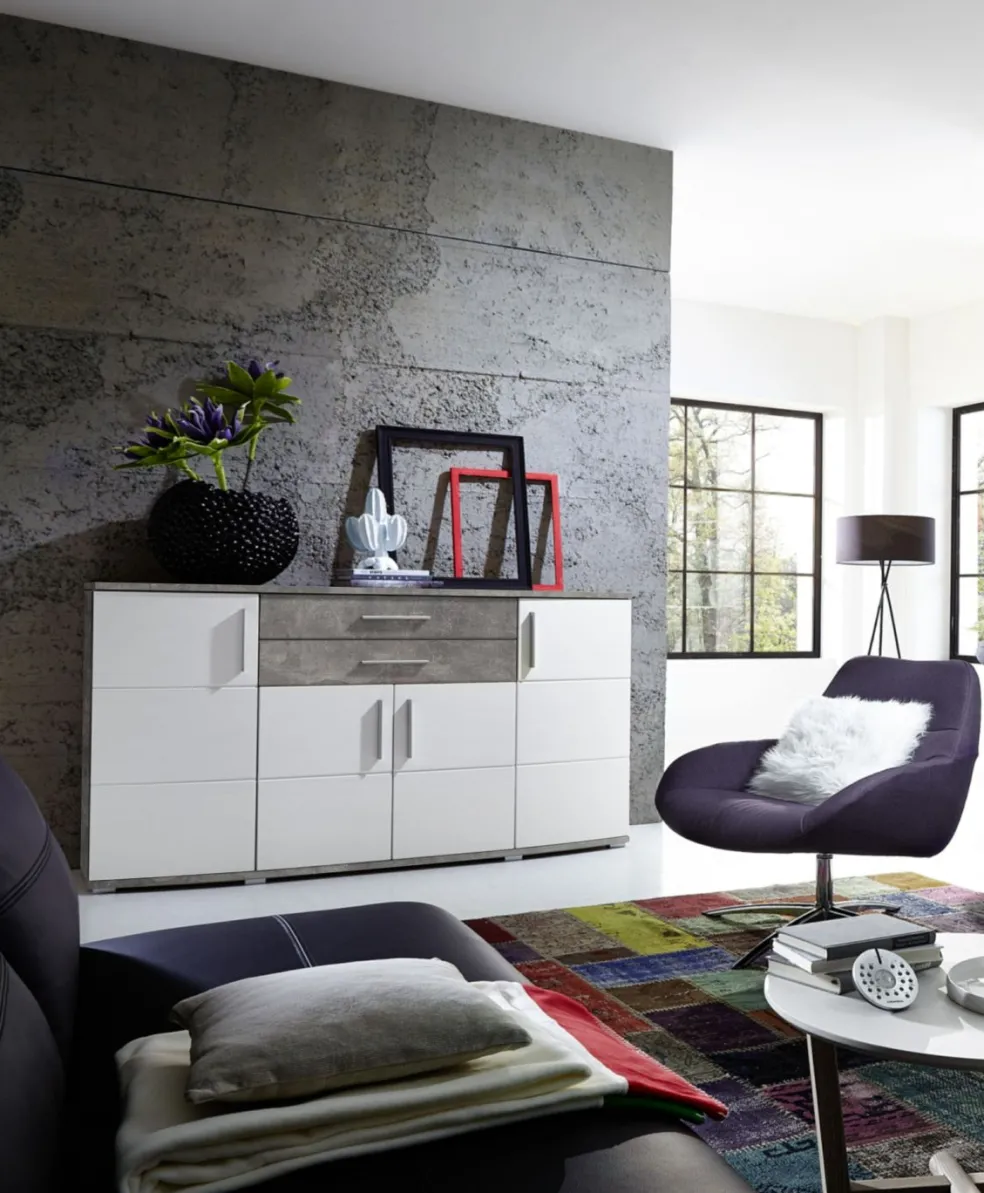 - Façade dans un joli modèle en MDF blanc texturé et contrastes en MDF béton asphalte