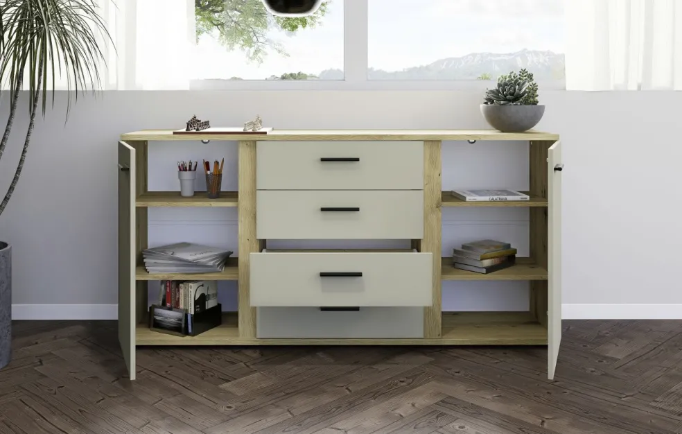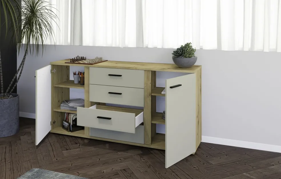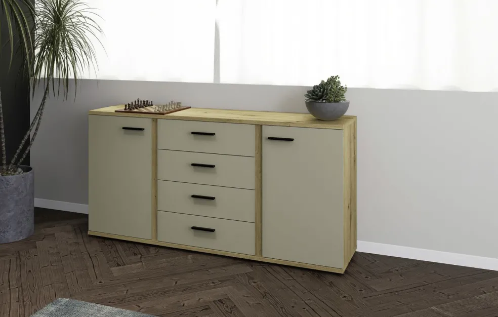 Façade: cachemire avec contrastes décor chêne Artisan, panneau de particules surfacé et mélaminé (PPSM)