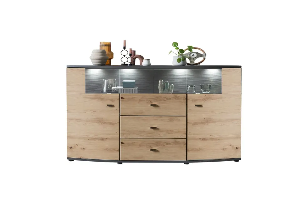 Façade: MDF (panneau de fibres de bois de densité moyenne) décor chêne Artisan avec contrastes ton anthracite / verre