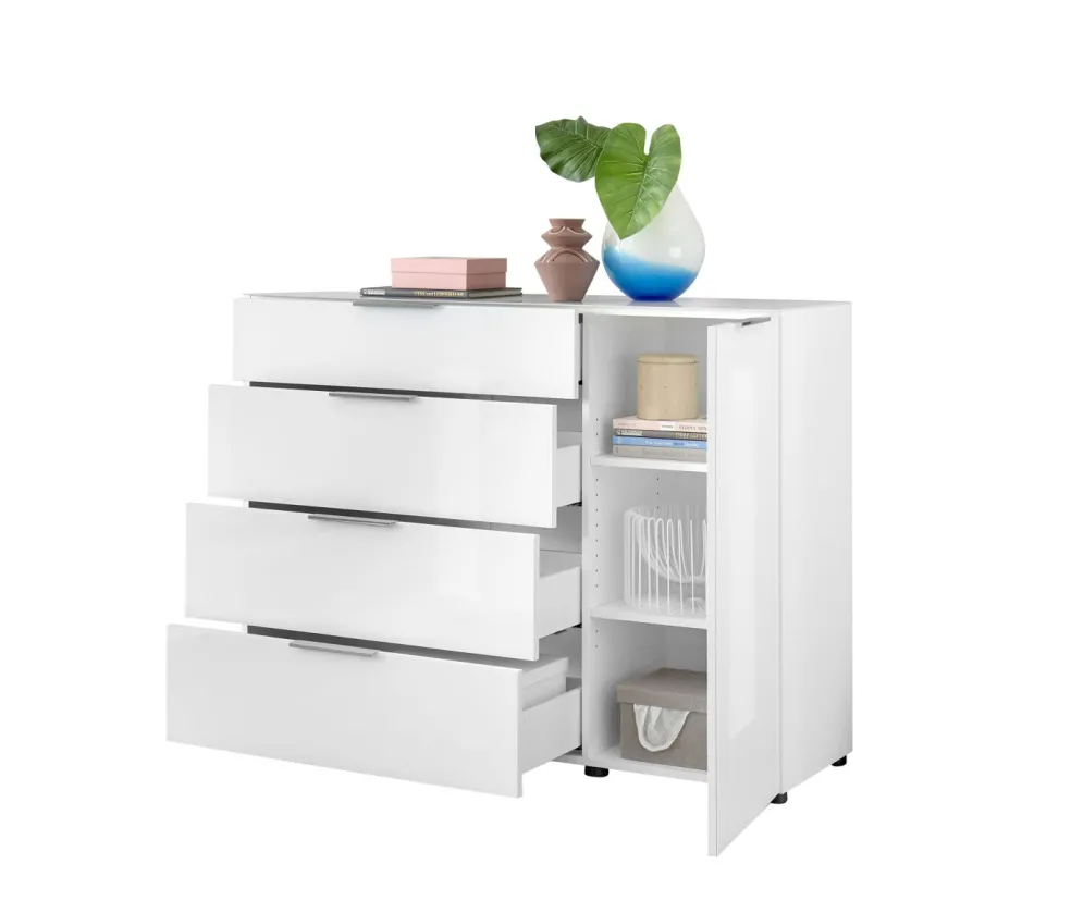 4 tiroirs avec fermeture amortie et coulisses sous tiroirs