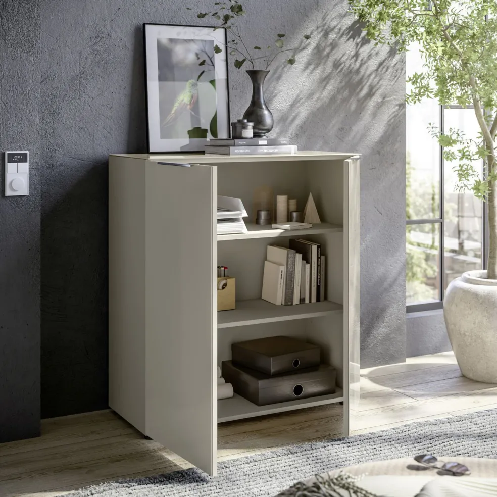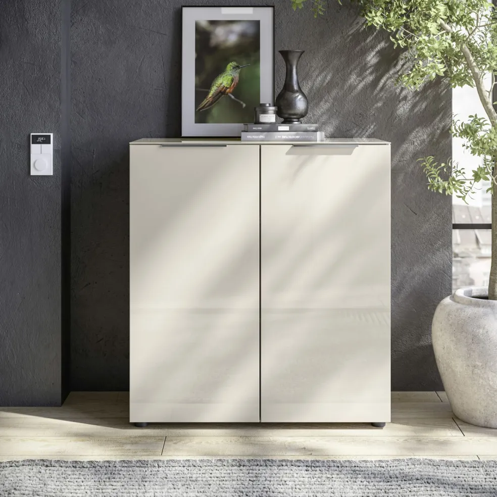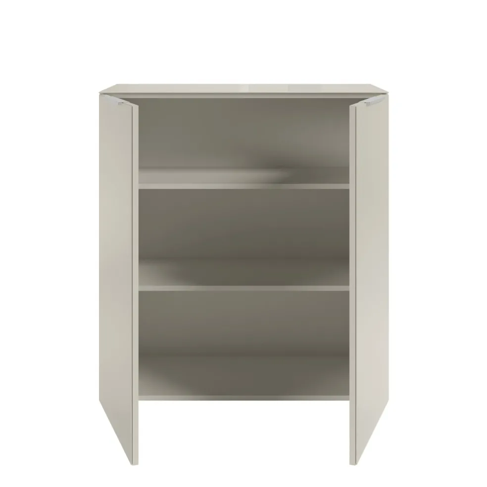 Caisson: ton cachemire, panneaux de particules surfacés et mélaminés (PPSM), tablette en verre lisse