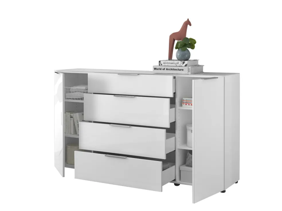 4 tiroirs avec fermeture amortie et coulisses sous tiroirs