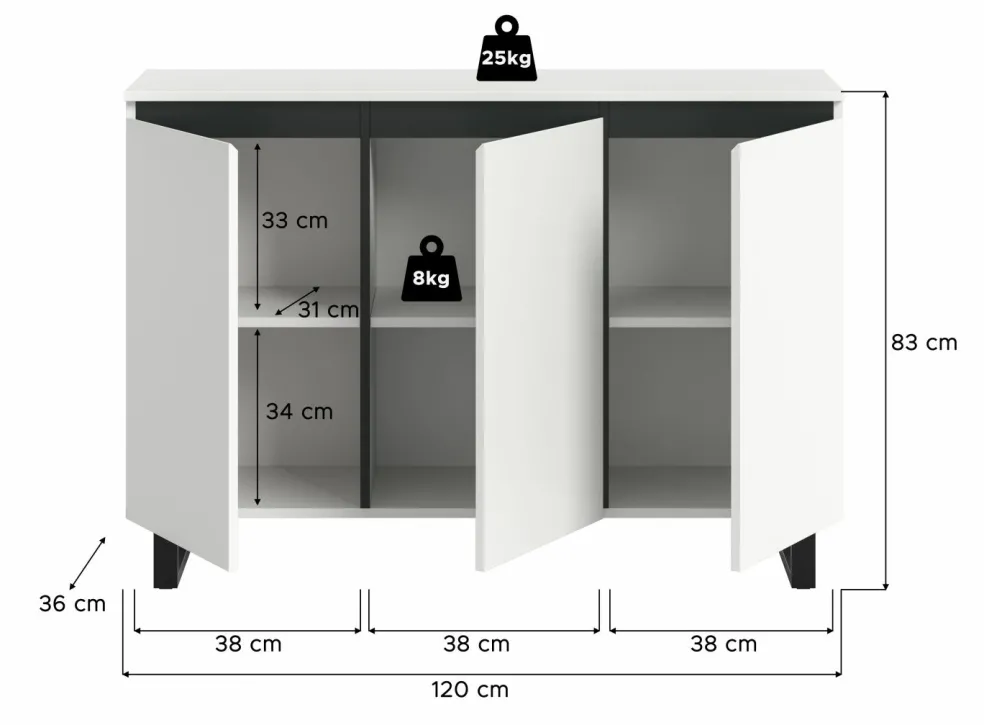 | Dimensions : | L/H/P env. 120/84/36 cm | ||
