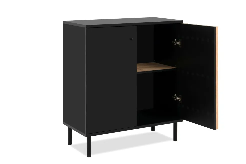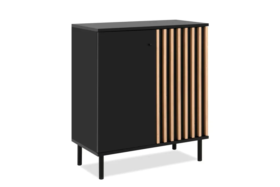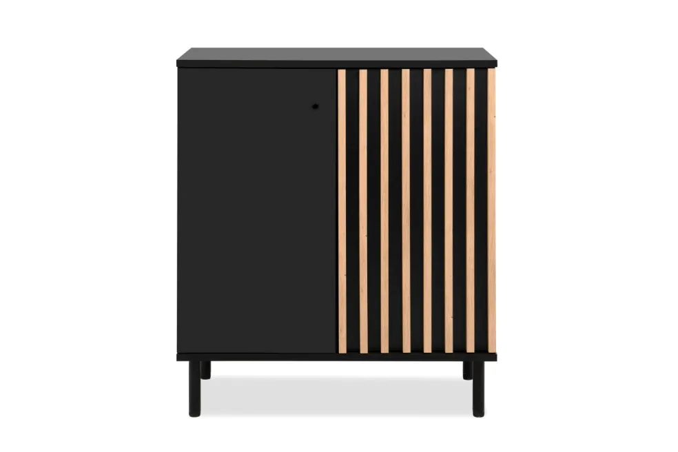 Façade: ton noir (avec traitement anti-traces de doigts) et lamelles décor chêne Artisan (aspect 3D)