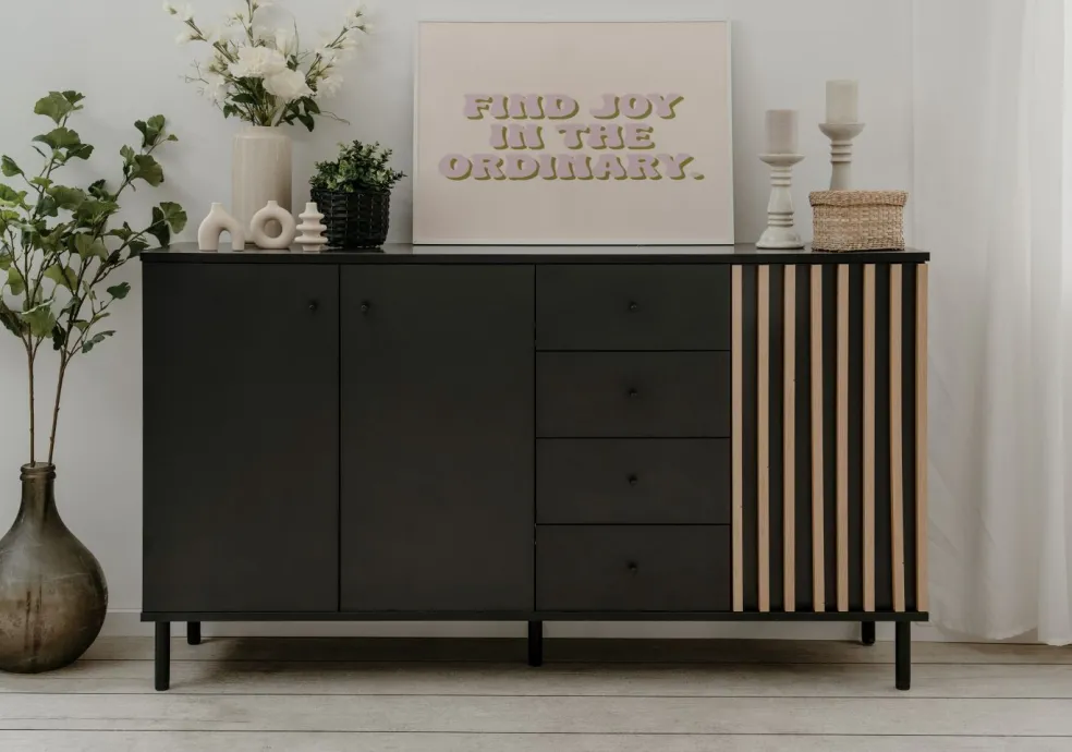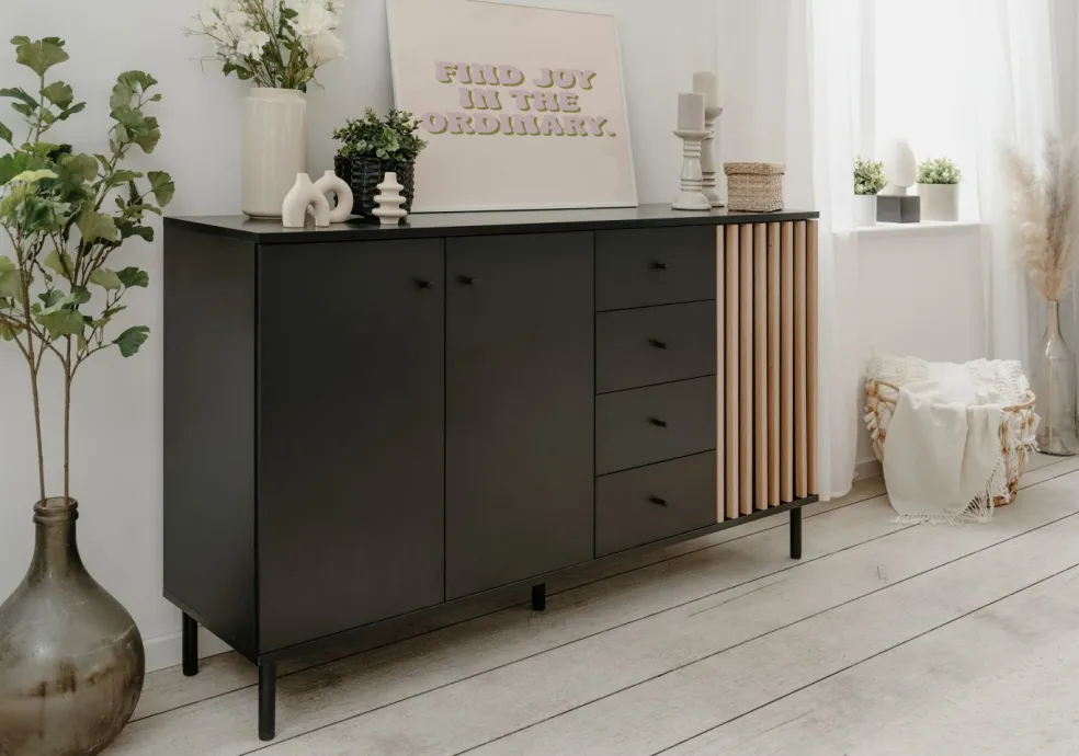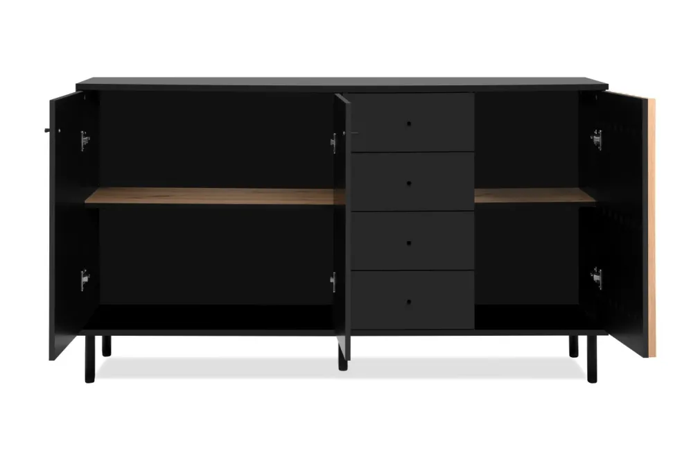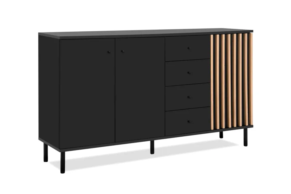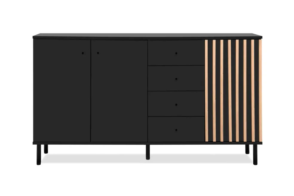 Façade: ton noir (avec traitement anti-traces de doigts) et lamelles décor chêne Artisan (aspect 3D)