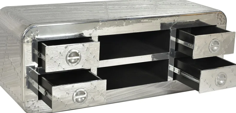 bois de manguier massif (Inde) avec MDF (panneau de fibres de bois de densité moyenne) et ferrures en alu ton argent
