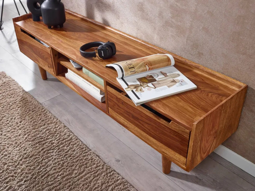 Banc TV complet : bois de sheesham massif (Inde)