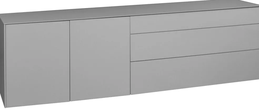 Façade et caisson: vernis gris craie mat / verre gris craie brillant