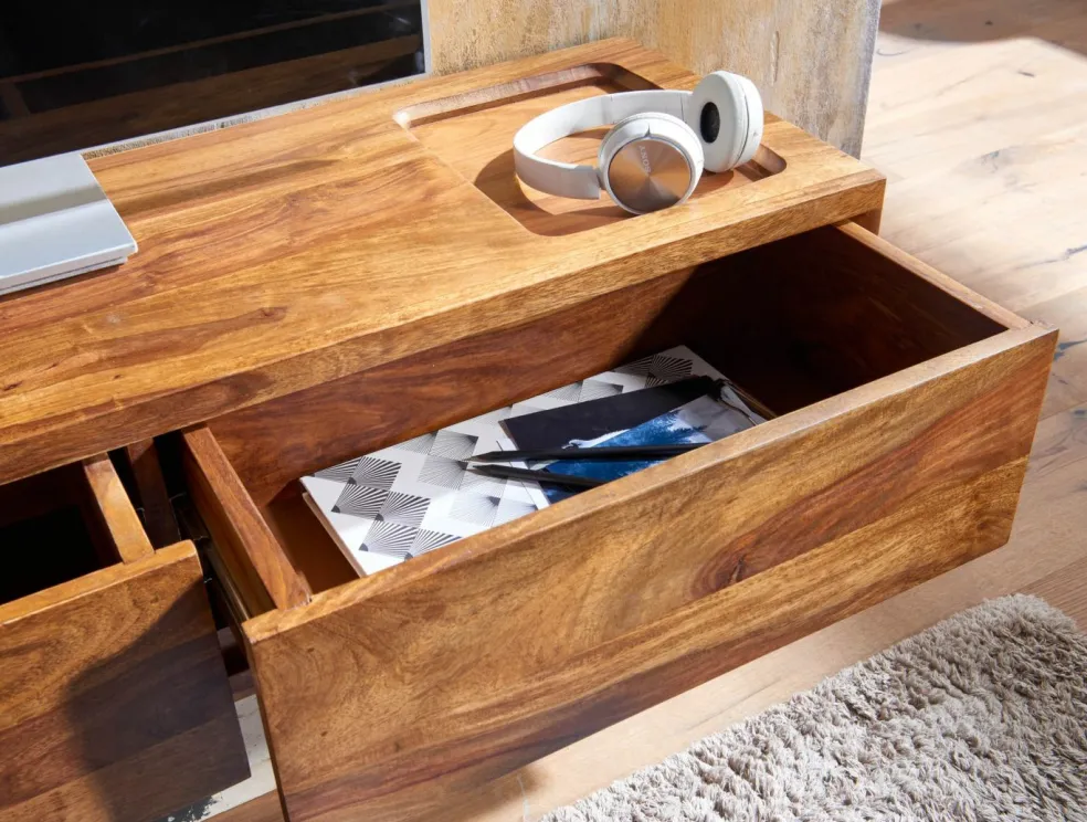 Banc TV complet : bois de sheesham massif (Inde)