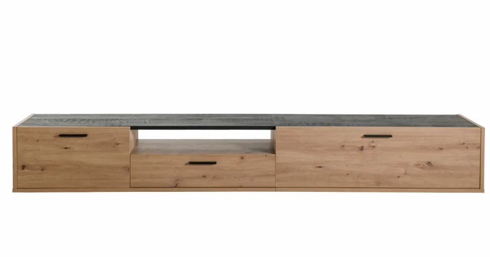 Décor chêne Artisan avec panneau supérieur décor bois aspect chalet ton noir