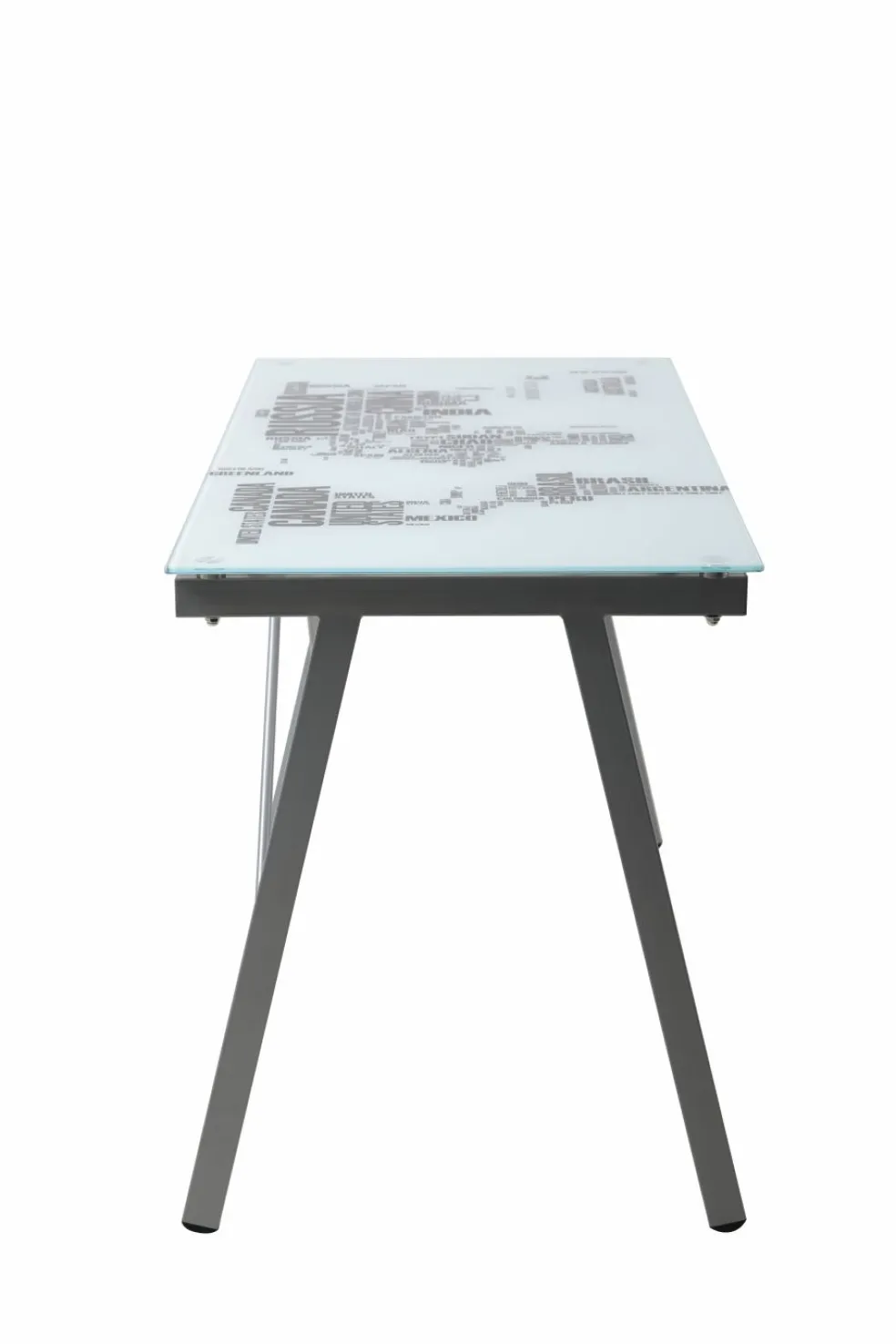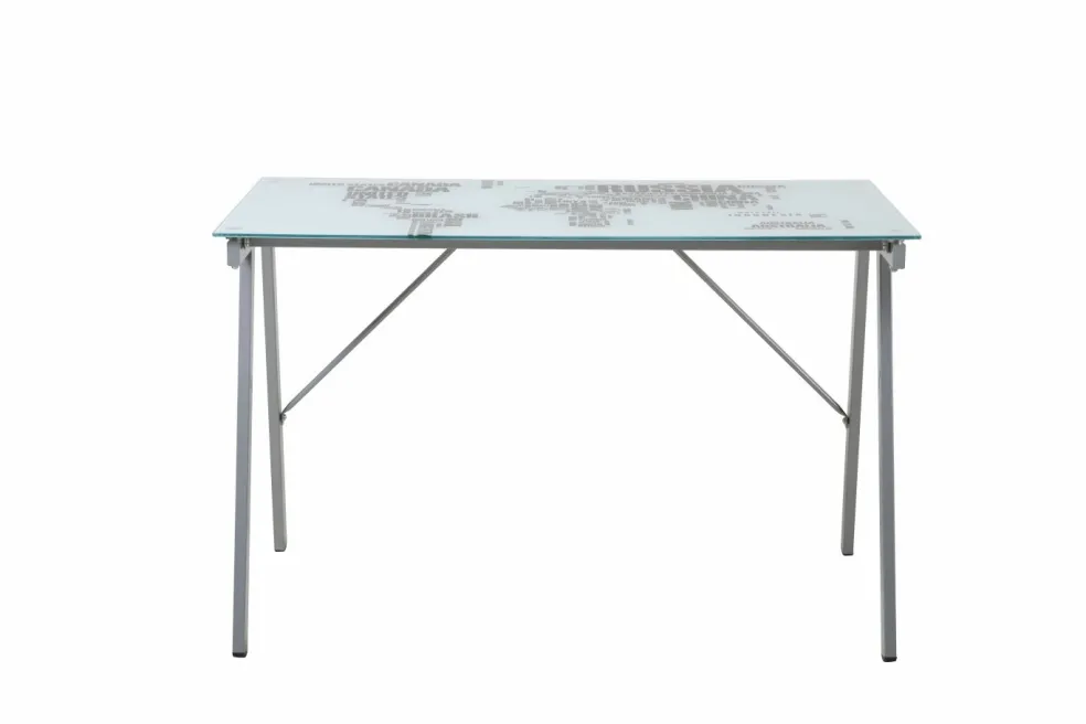 Plateau de table : verre de sécurité ton blanc avec motif mappemonde