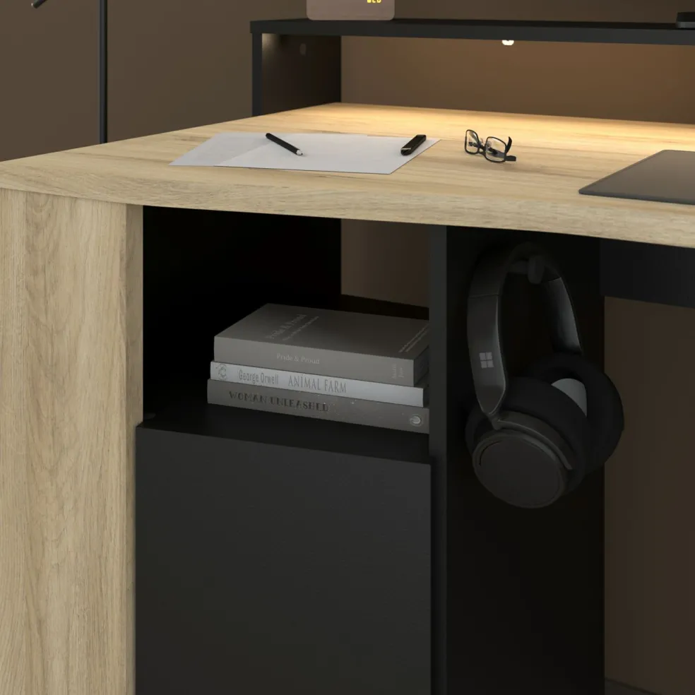 À droite : 2 tablettes, casier ouvert pour tour de l’ordinateur