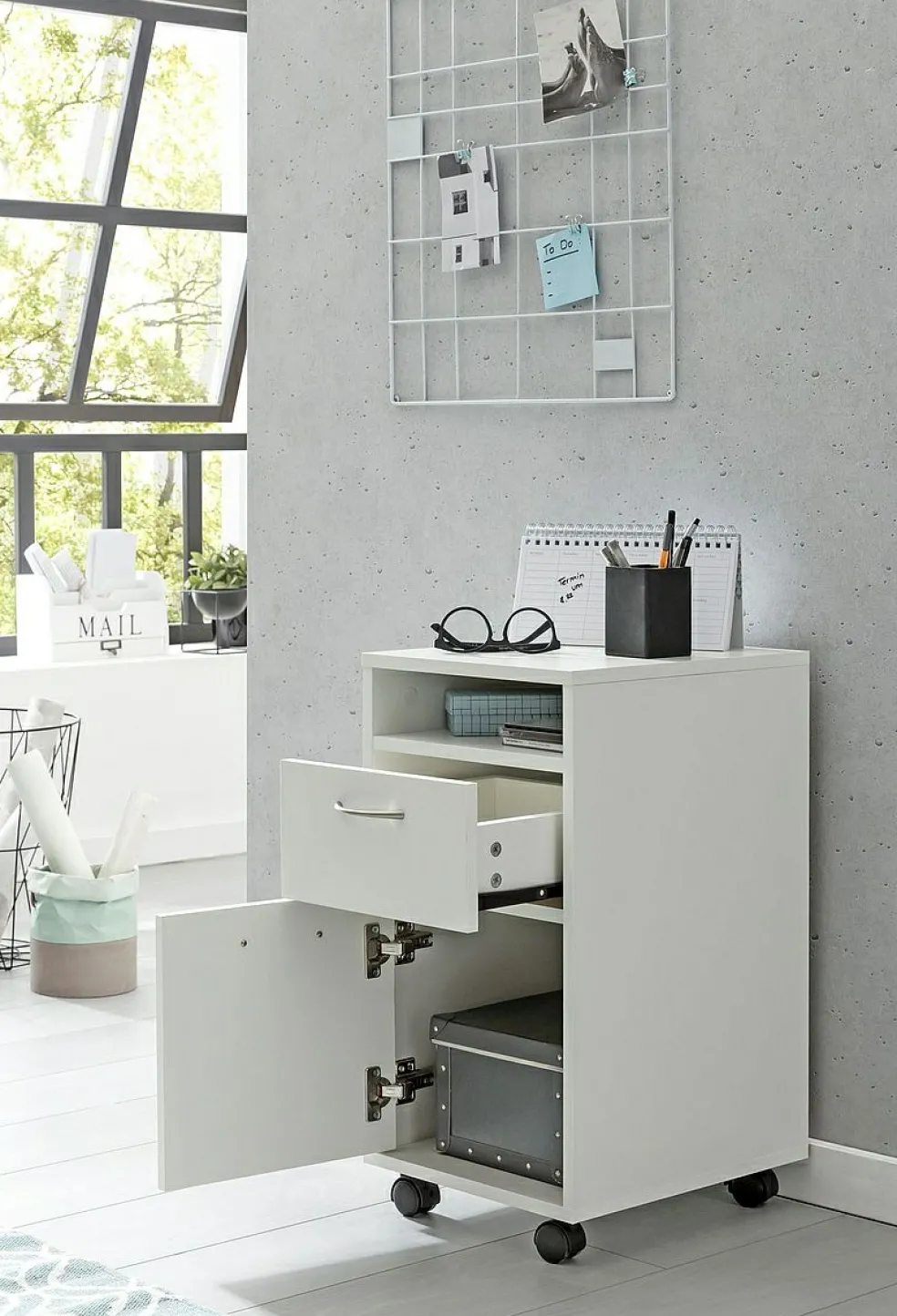 | Commode-phono-bureau-salle de bain-étagère: | Caisson à roulettes | ||