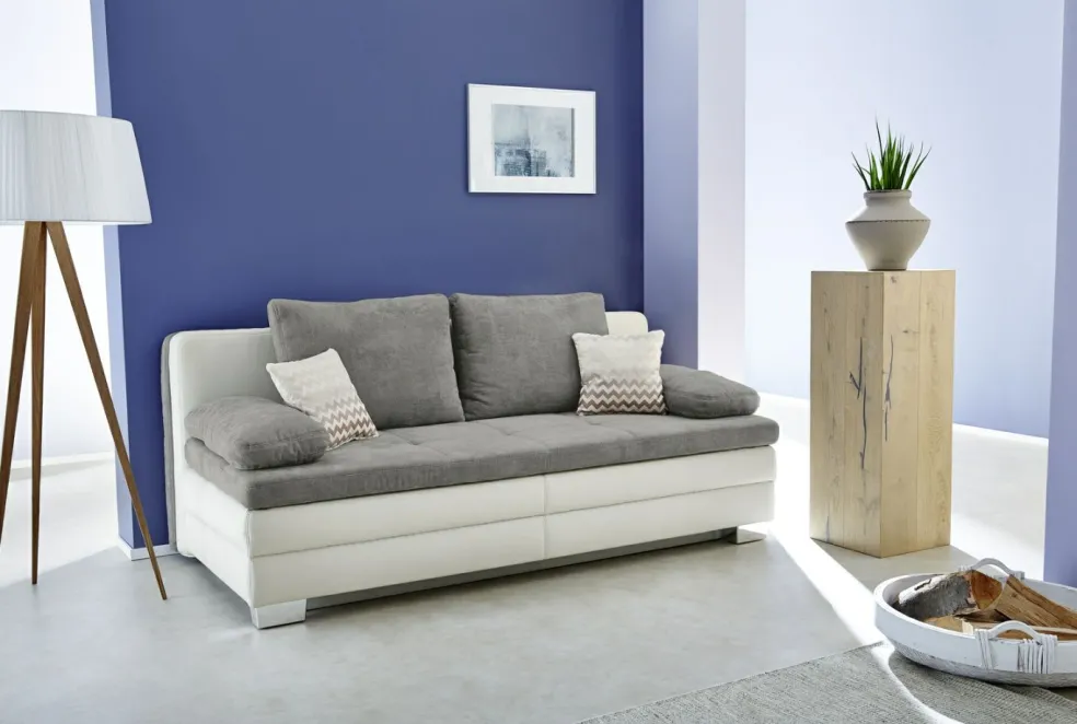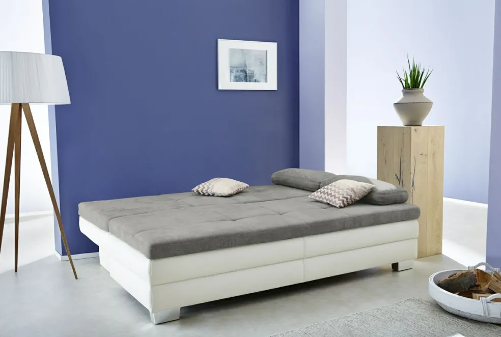 Canapé convertible de qualité avec surmatelas en mousse haute résilience cousu sur toute l’assise et la surface de couchage. Le garnissage en mousse polyéther de qualité avec suspension nosag dans l’assise et le dossier offre un confort optimal d’assise et de couchage. Il peut également servir de lit quotidien grâce à son rembourrage. Le coffre de lit intégré offre un bel espace de rangement. Grâce à son dos habillé, ce canapé convertible peut être positionné n’importe où dans la pièce.