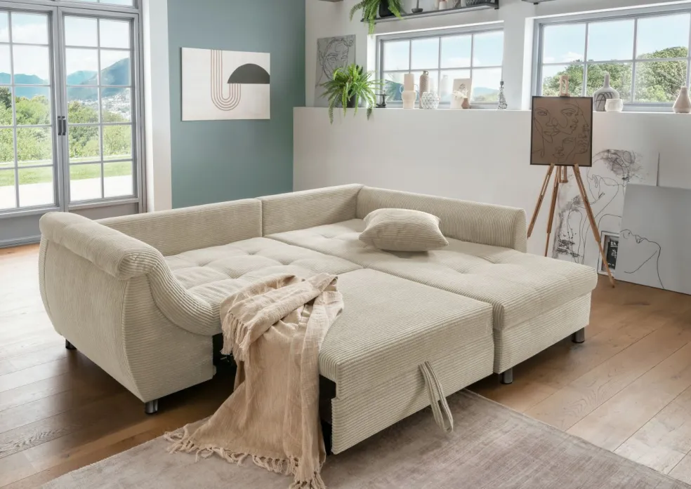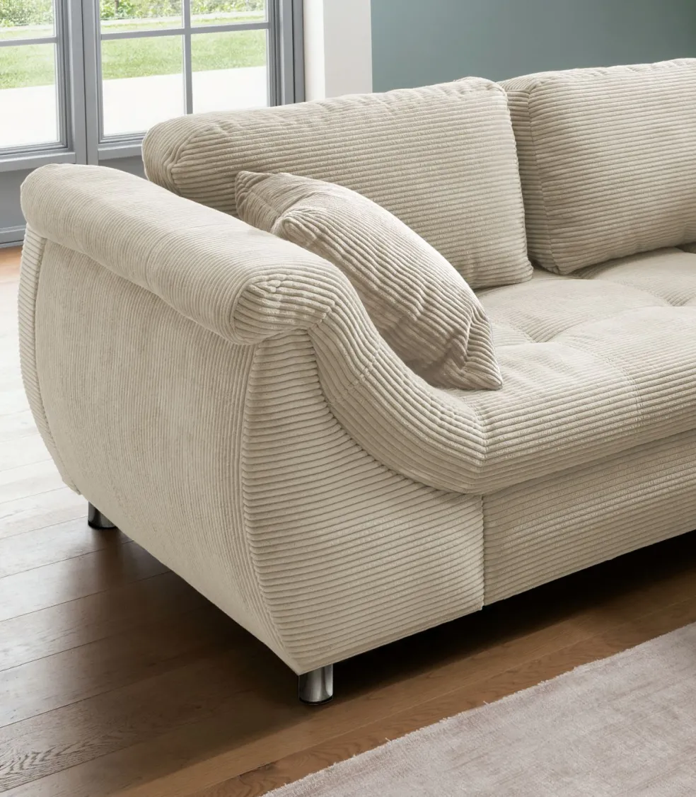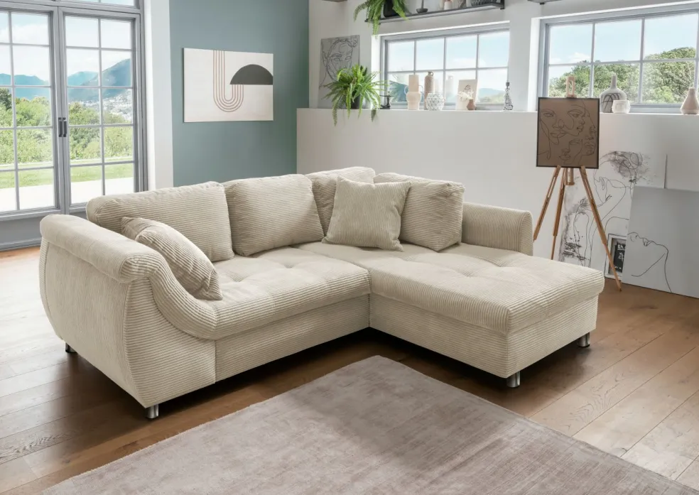 Revêtement: canapé d’angle en velours côtelé 4808ton beige100% polyester; coussins décoratifs en velours côtelé 4808ton beige 100% polyester
