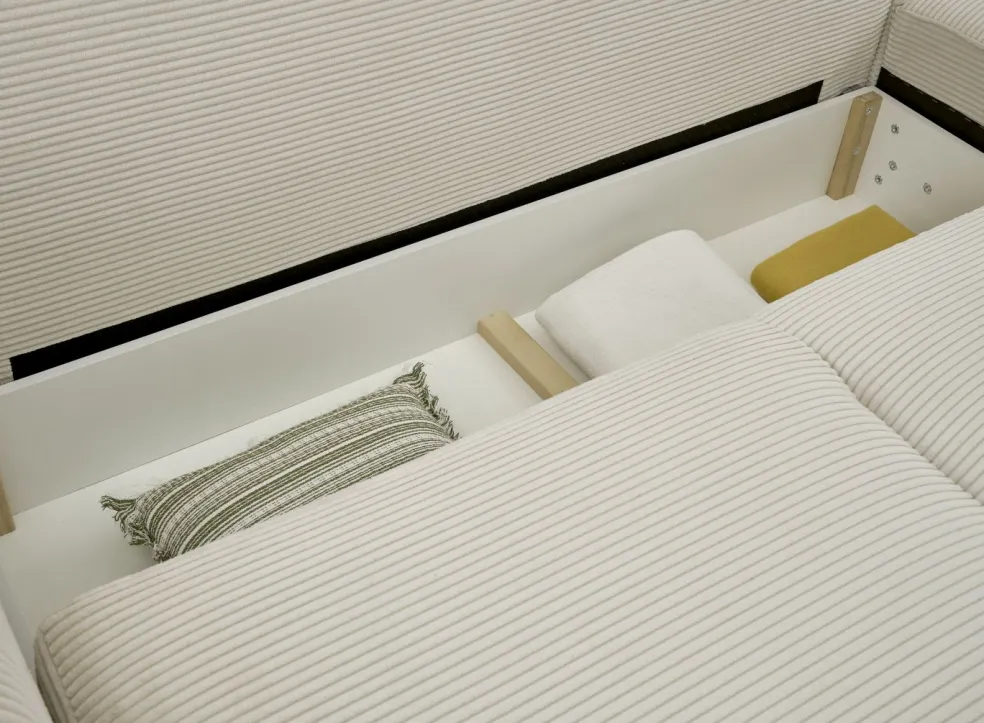 | Equipement canapés: | Dos habillé, Méridienne à droite ou à gauche, incl. coffre de lit, incl. coussins | ||