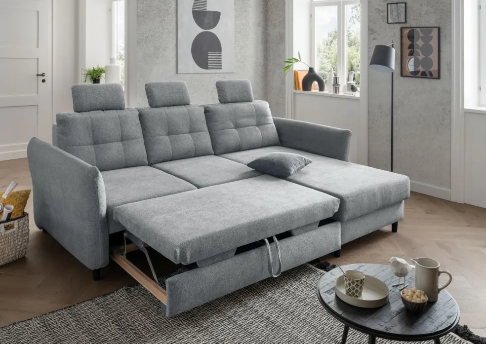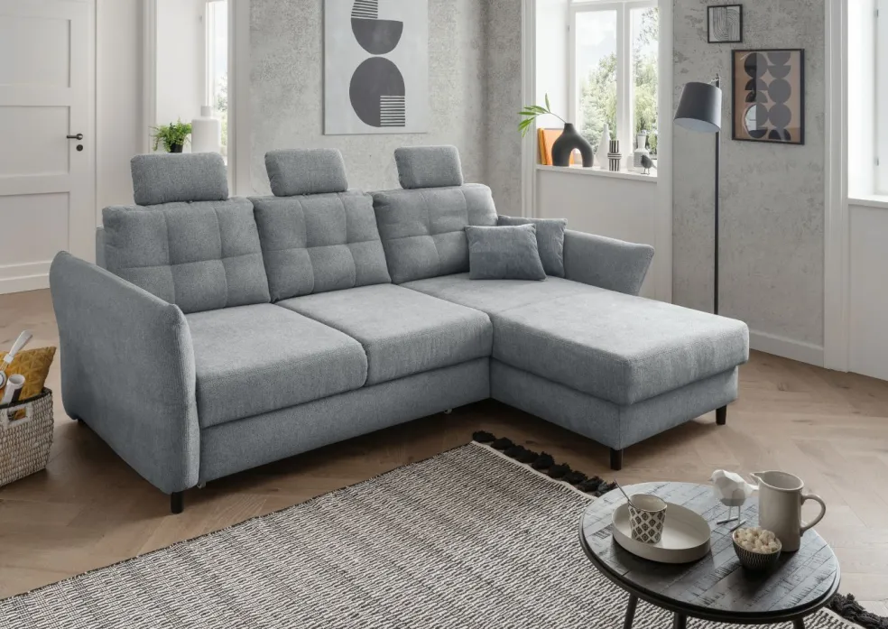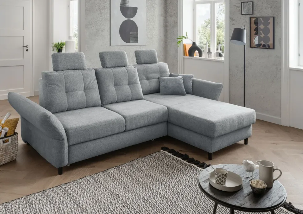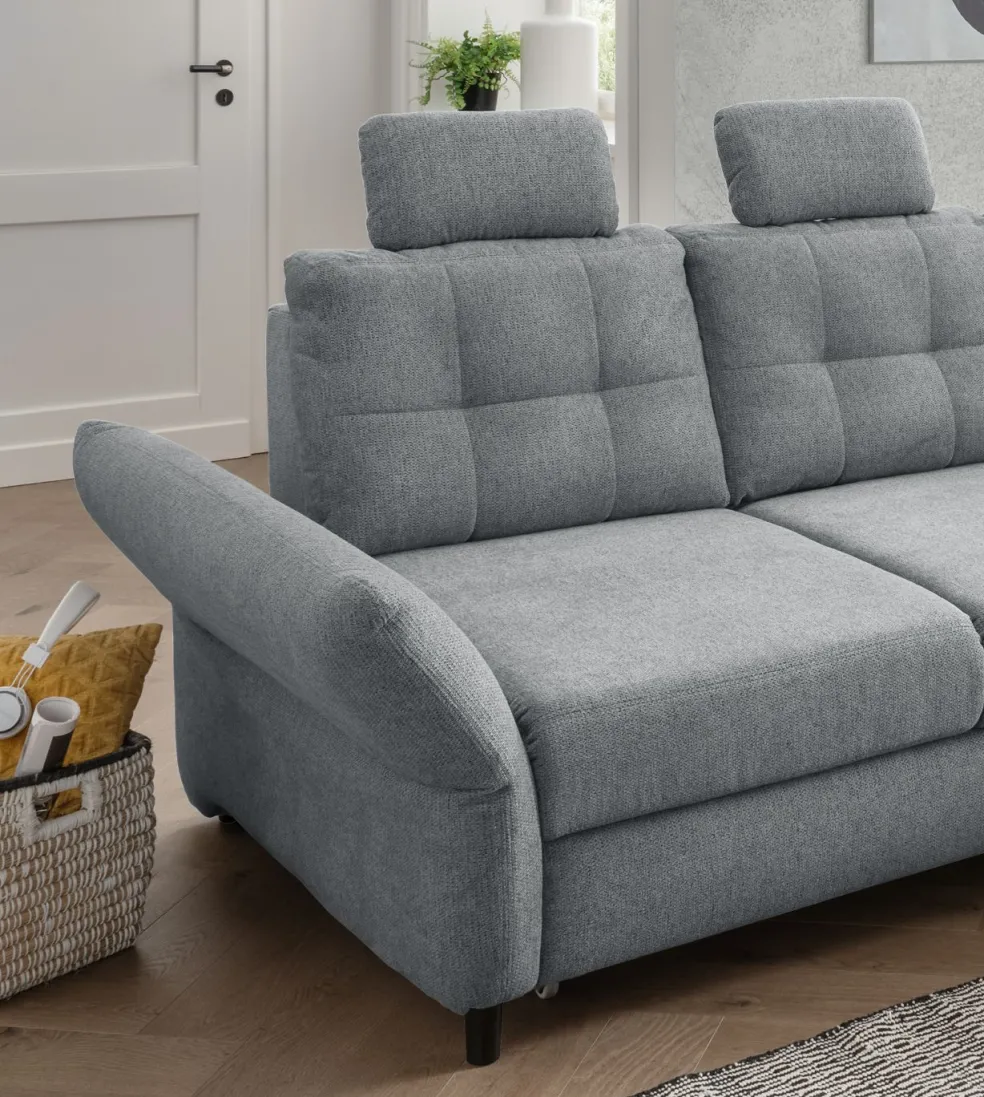 | Equipement canapés: | Dos habillé, Méridienne à droite, incl. coffre de lit, incl. coussins | ||