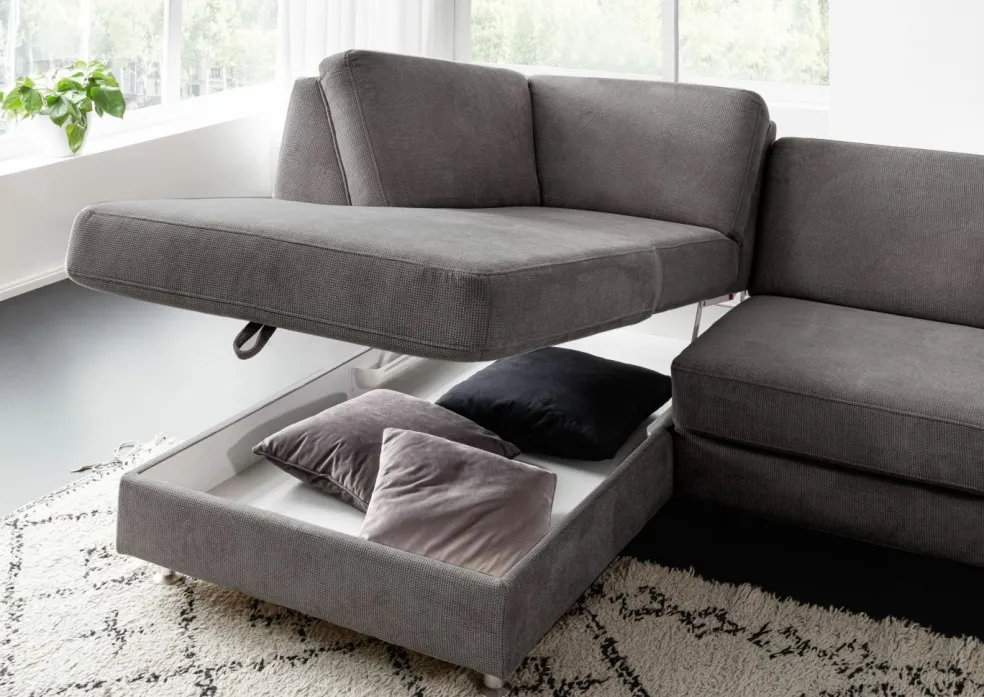 | Equipement canapés: | Appuie-tête(s), Dos habillé, Méridienne à gauche, incl. coffre de lit | ||