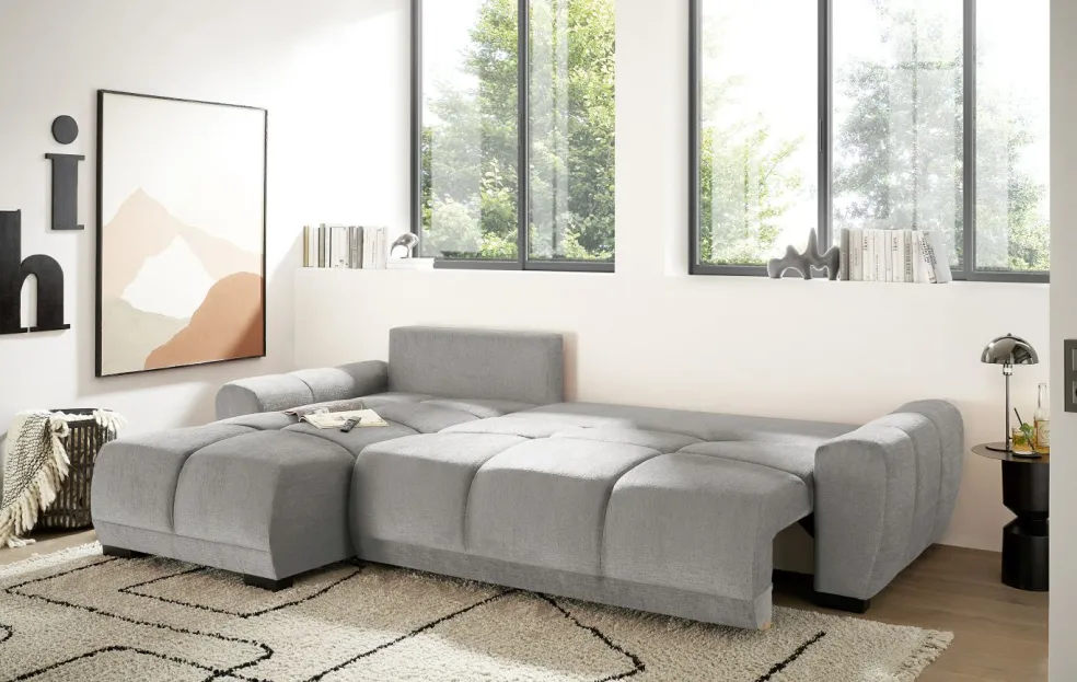 | Equipement canapés: | Dos habillé, Méridienne à gauche, incl. coffre de lit, incl. coussins | ||