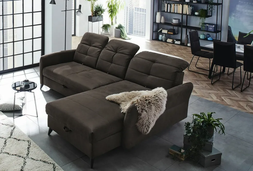 | Equipement canapés: | Appuie-tête(s), Dos habillé, Méridienne à droite ou à gauche, Prolongement de l’assise manuellement, incl. coffre de lit | ||