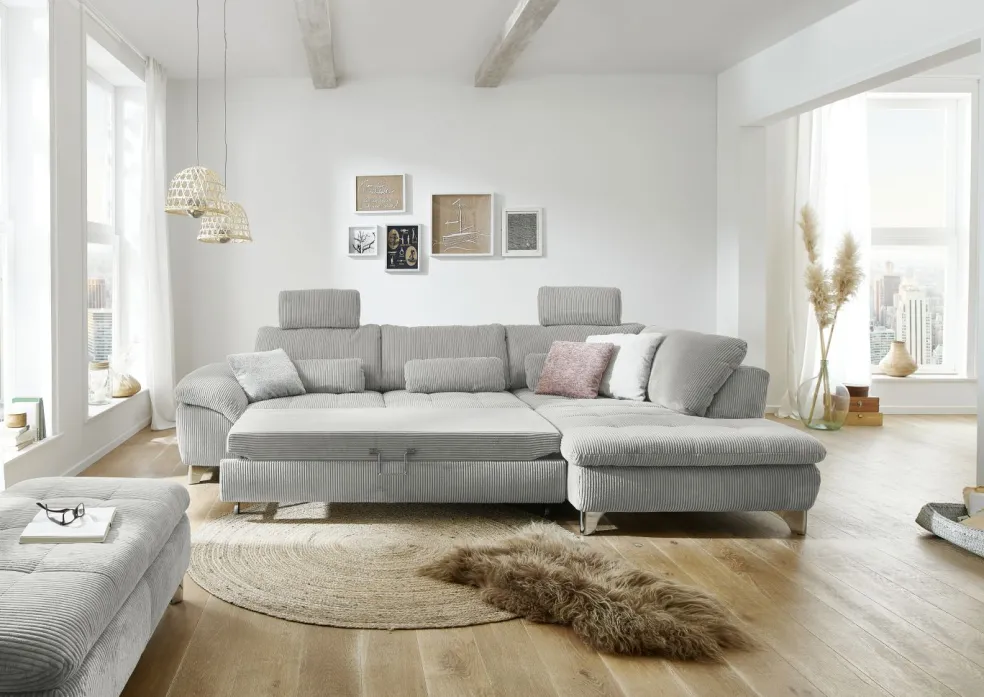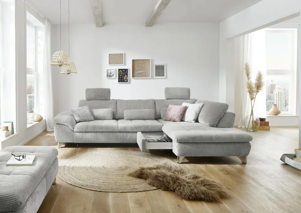 | Equipement canapés: | Appuie-tête(s), Dos habillé, Méridienne à droite, Prolongement de l’assise manuellement, Tiroirs | ||
