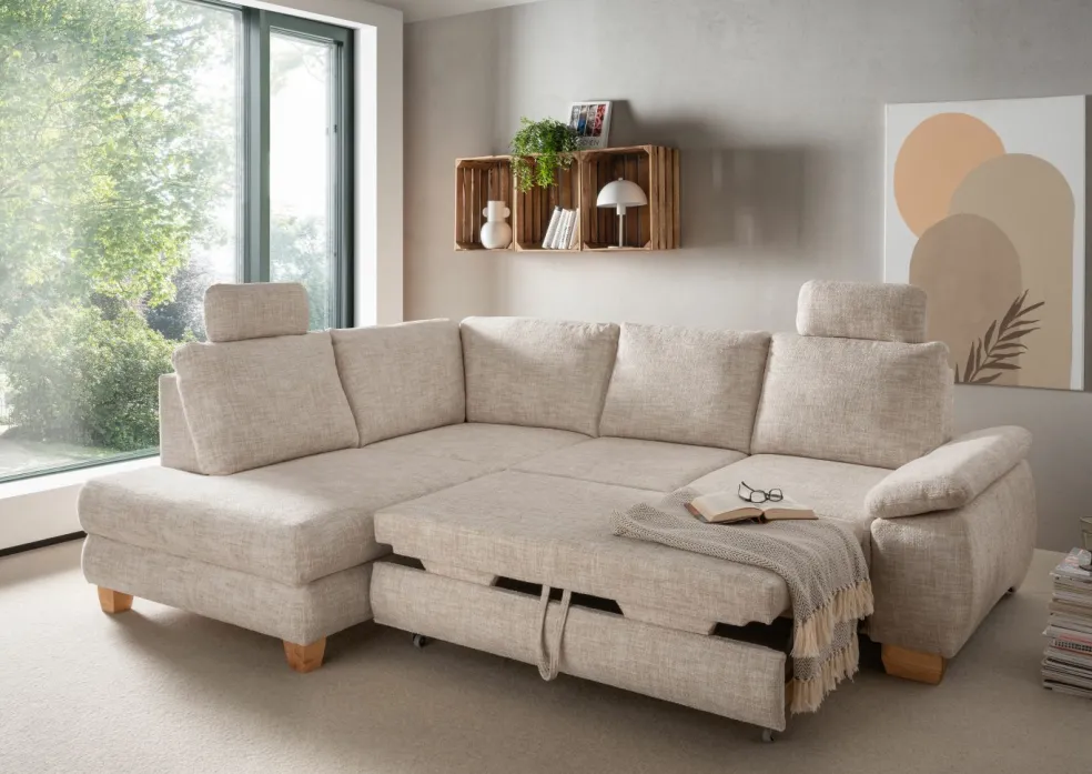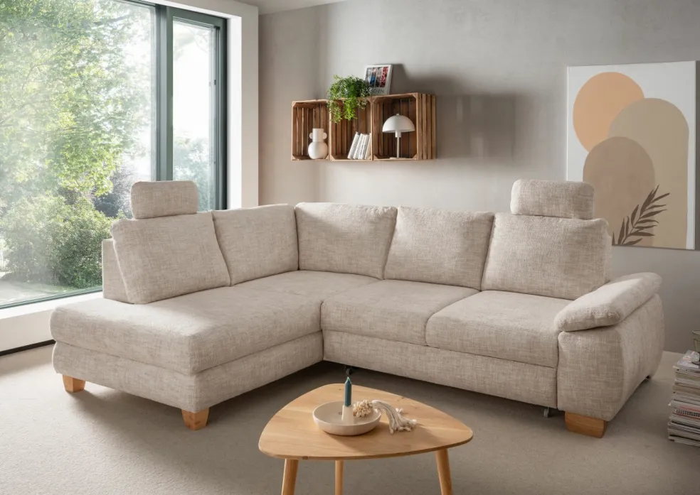 | Equipement canapés: | Appuie-tête(s), Dos habillé, Méridienne à gauche, Prolongement de l’assise manuellement, incl. coffre de lit | ||