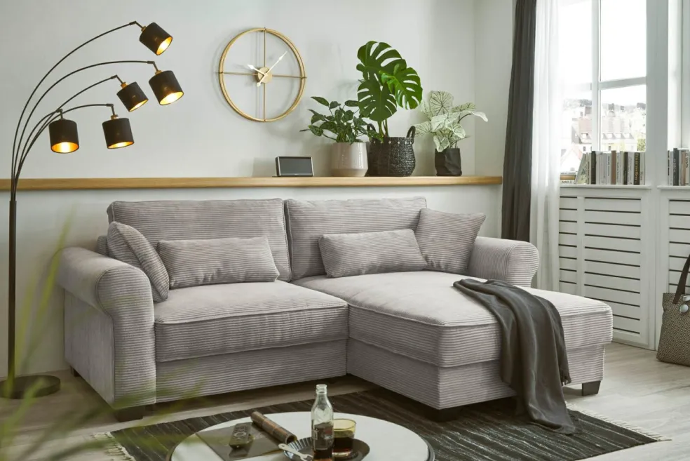 | Equipement canapés: | Dos habillé, Méridienne à droite ou à gauche, incl. coffre de lit, incl. coussins | ||
