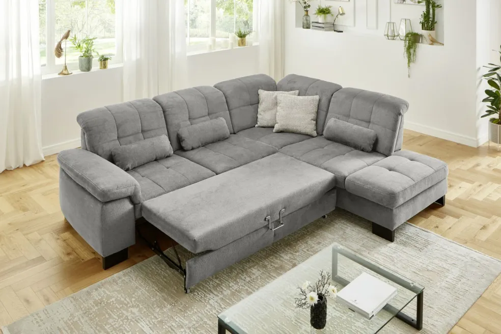 | Equipement canapés: | Appuie-tête(s), Dos habillé, Espace de rangement, Méridienne à droite, Prolongement de l’assise manuellement | ||