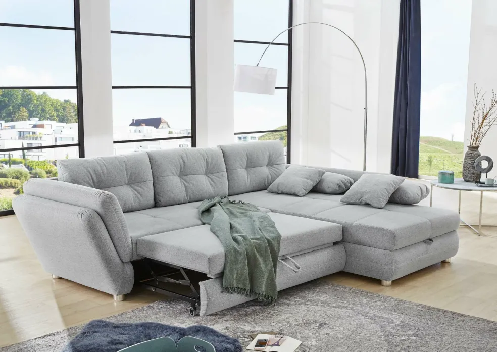 | Equipement canapés: | Dos habillé, Méridienne à droite ou à gauche, incl. coffre de lit, incl. coussins | ||