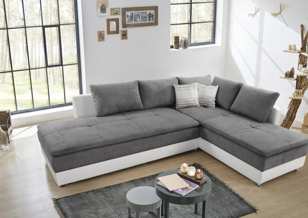 Méridienne à droite, élément canapé à gauche