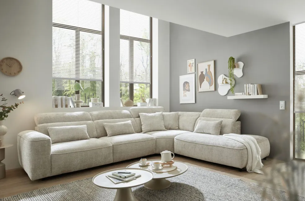 | Equipement canapés: | Méridienne à droite, incl. coussins | ||