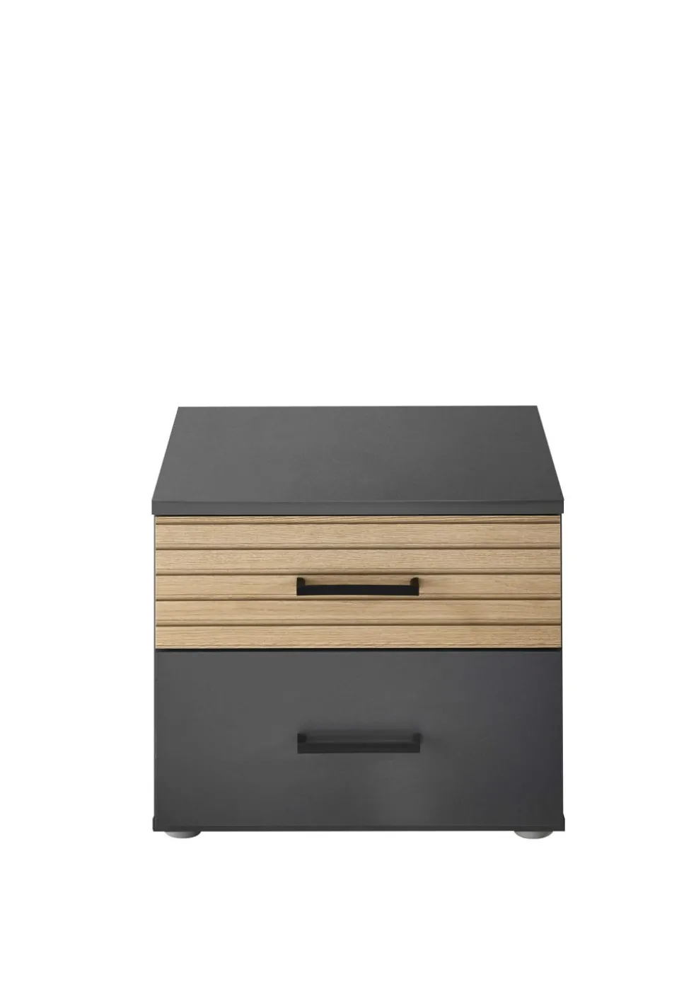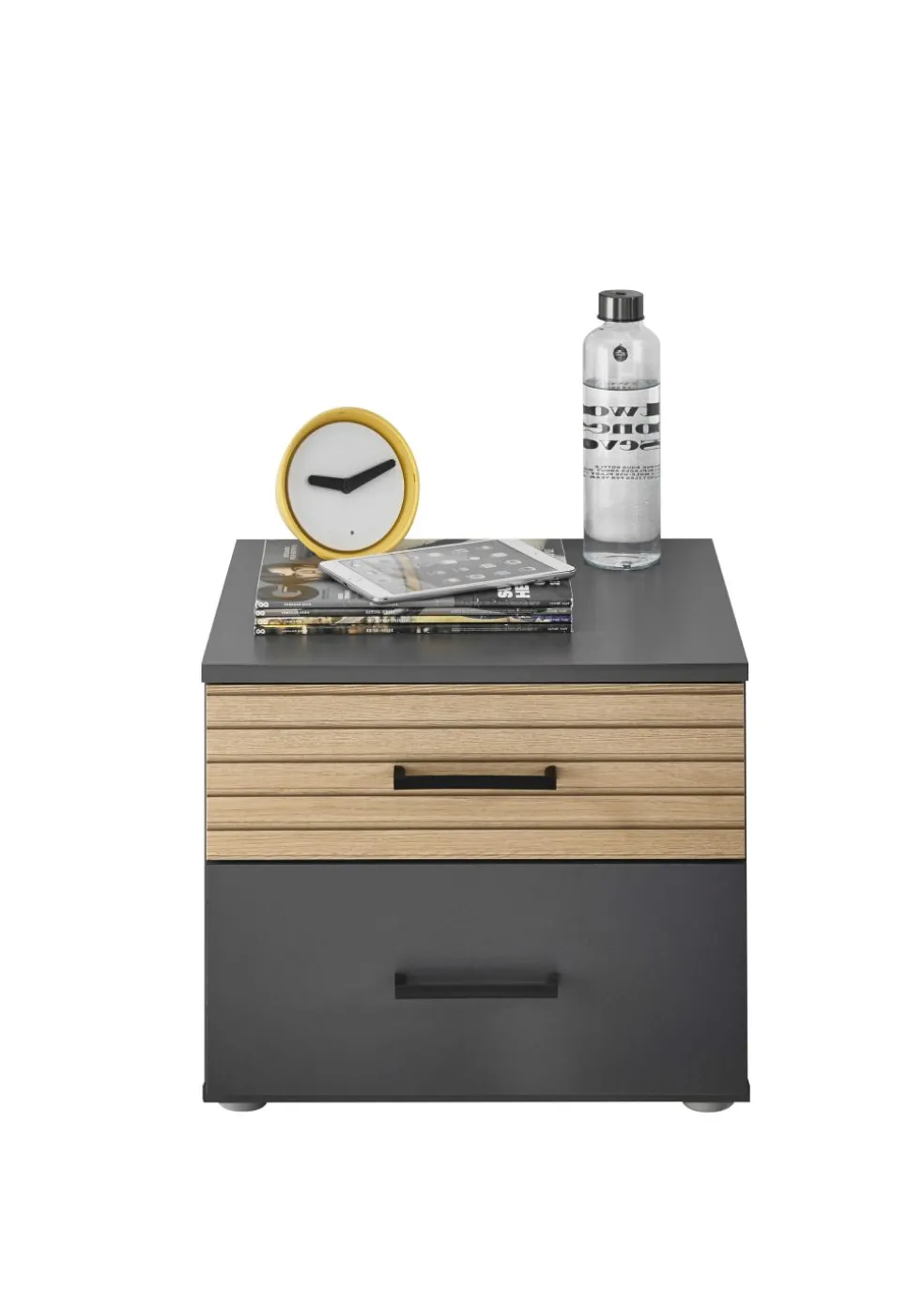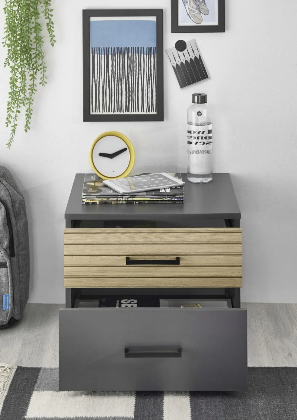 ton graphite avec façade tiroir décor lamelles de chêne, revêtement mélaminé